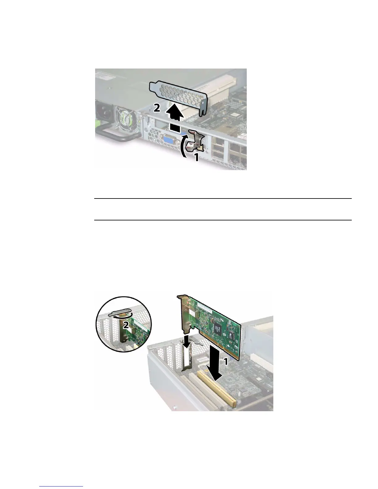 FIGURE 3-60 Installing a PCI Card (Sun Fire X4200/X4200 M2 Server Shown)