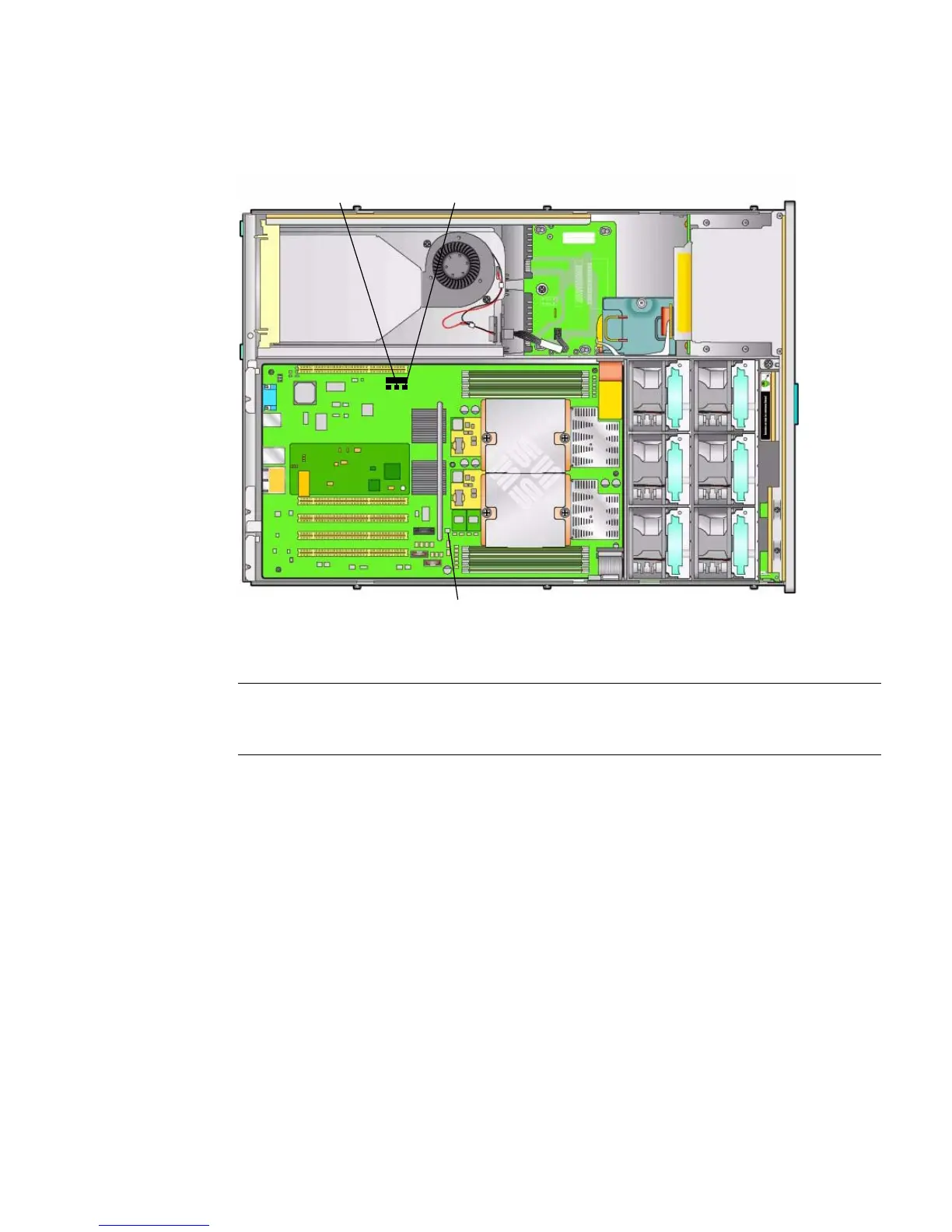 FIGURE 2-8 Location of Jumpers on the Sun Fire X4100/X4200 Motherboard