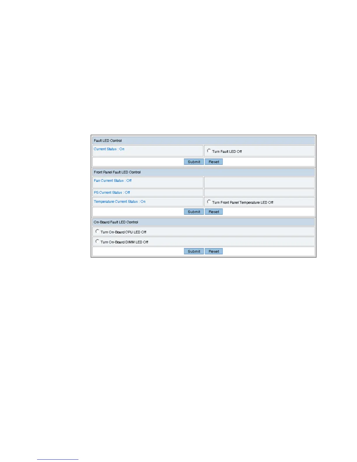 2. Click the appropriate Submit button for the particular section to turn the LED