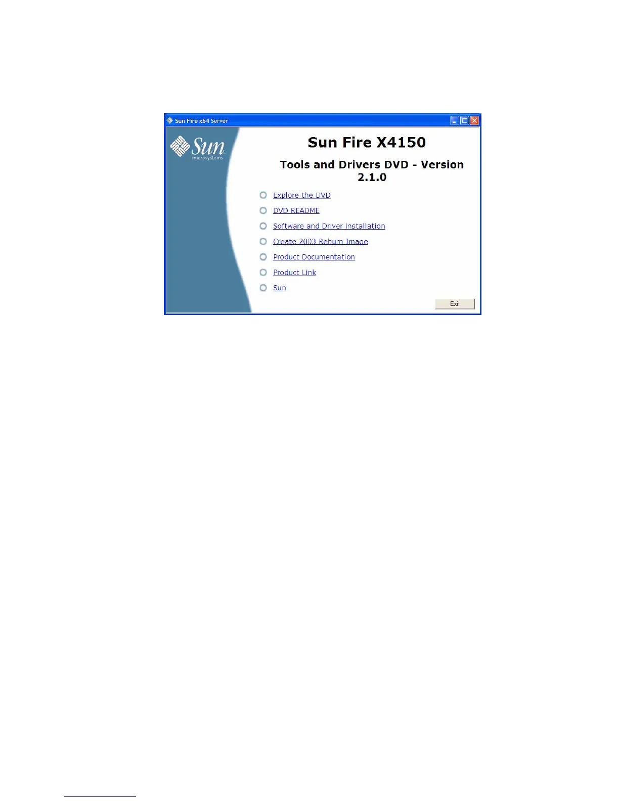 FIGURE 4-1 Sun Fire X4150 Tools and Drivers Main Menu Example