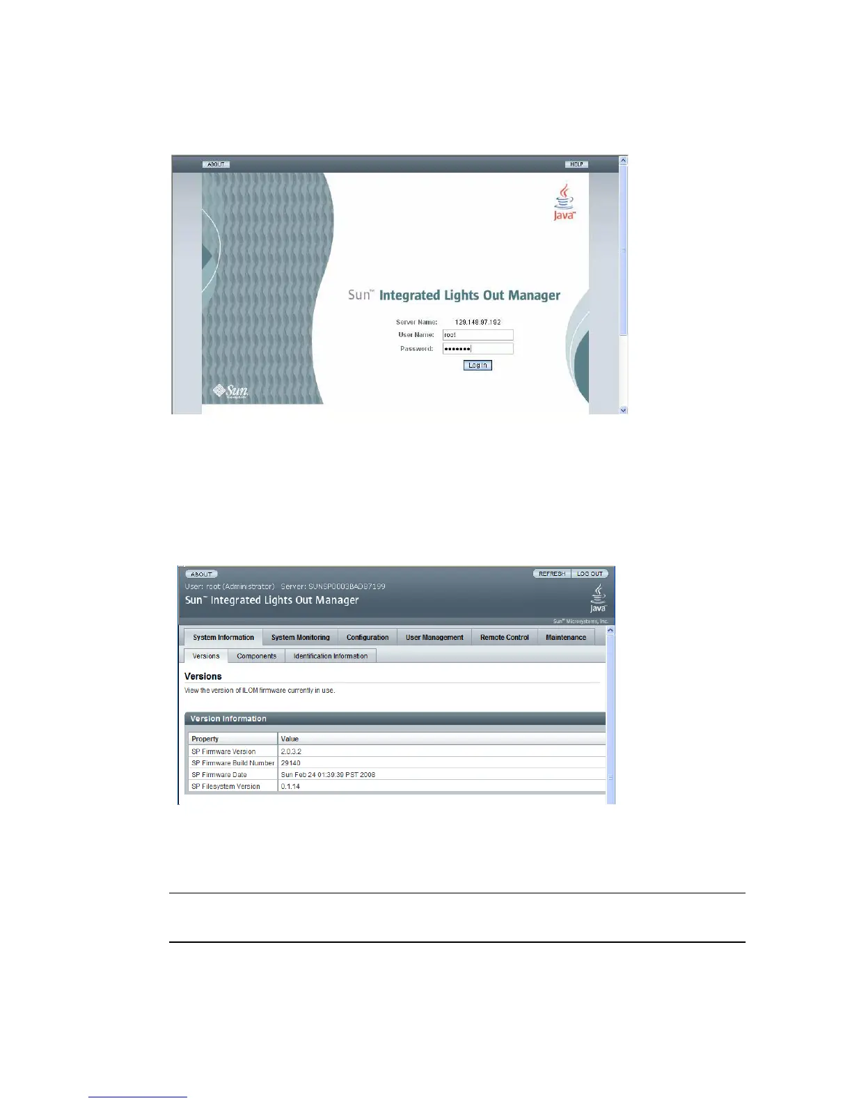 FIGURE 5-4 ILOM WebGUI Interface Version Information Screen