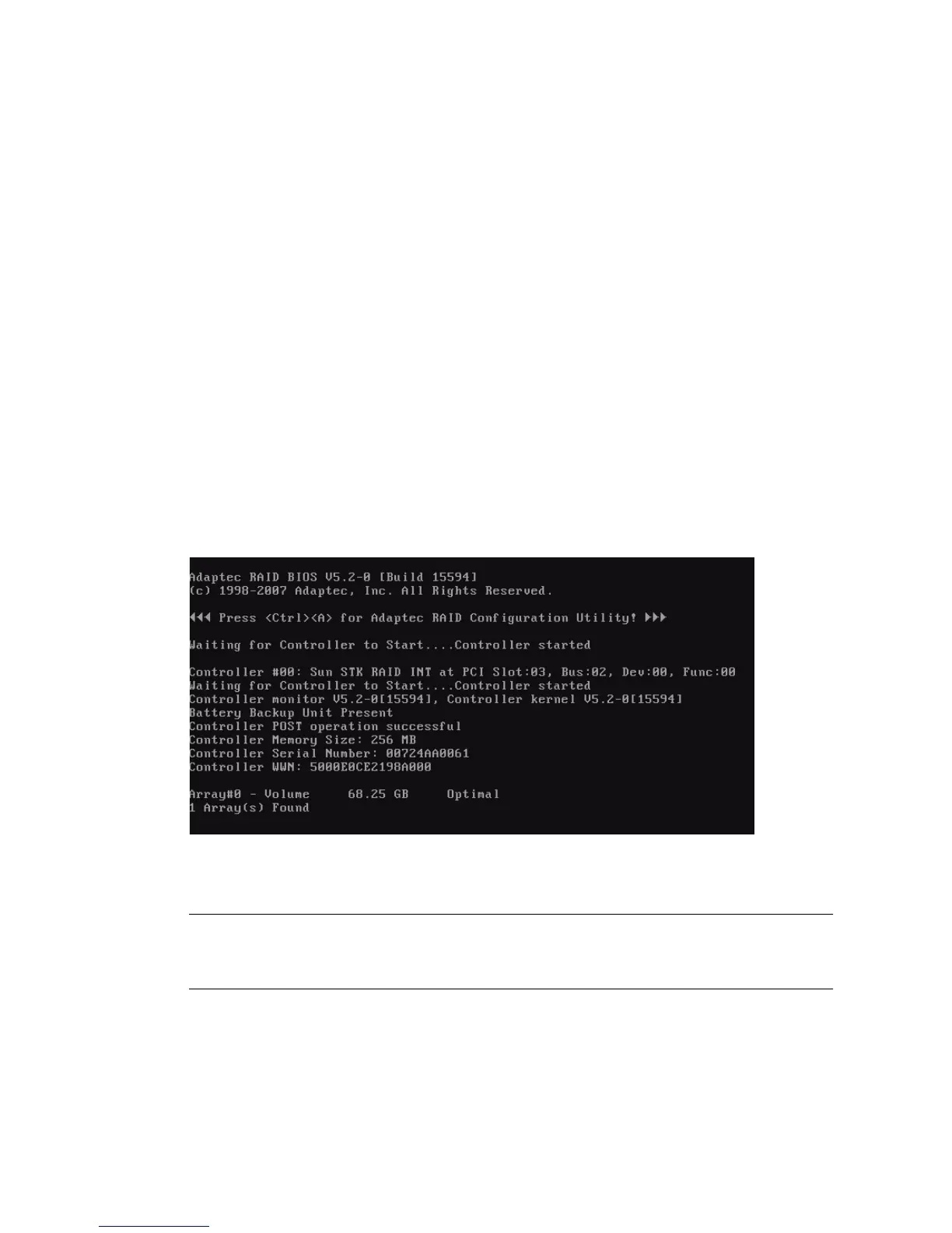 FIGURE 7-1 Example Startup Screen Showing Existing Adaptec-based Array Volume
