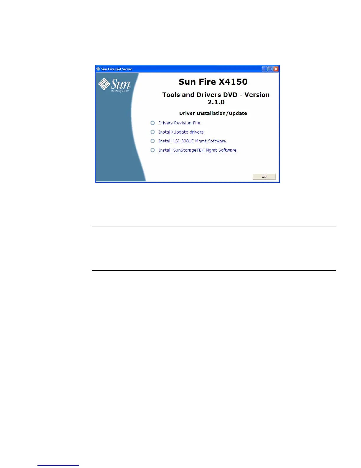 FIGURE 8-2 Sun Fire X4150 Driver Installation/Update Page Example