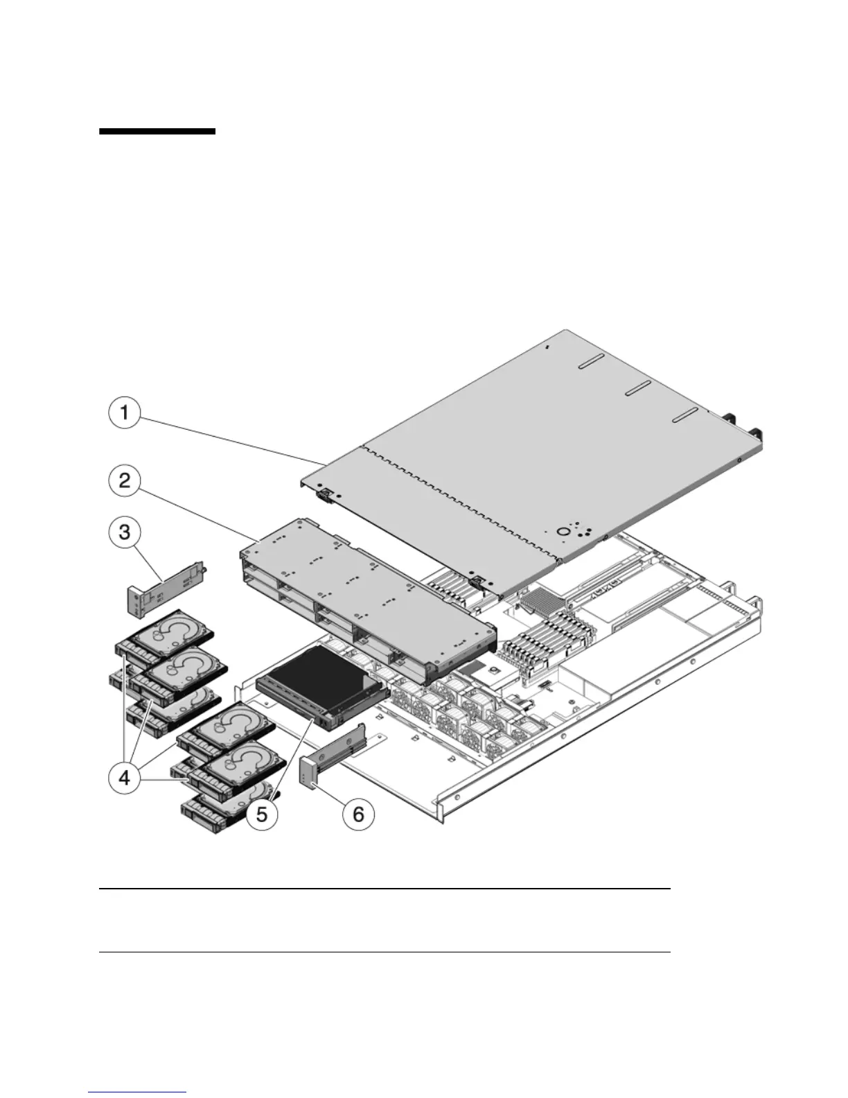 The following illustrations provide exploded views of Sun Fire X4150 Server system