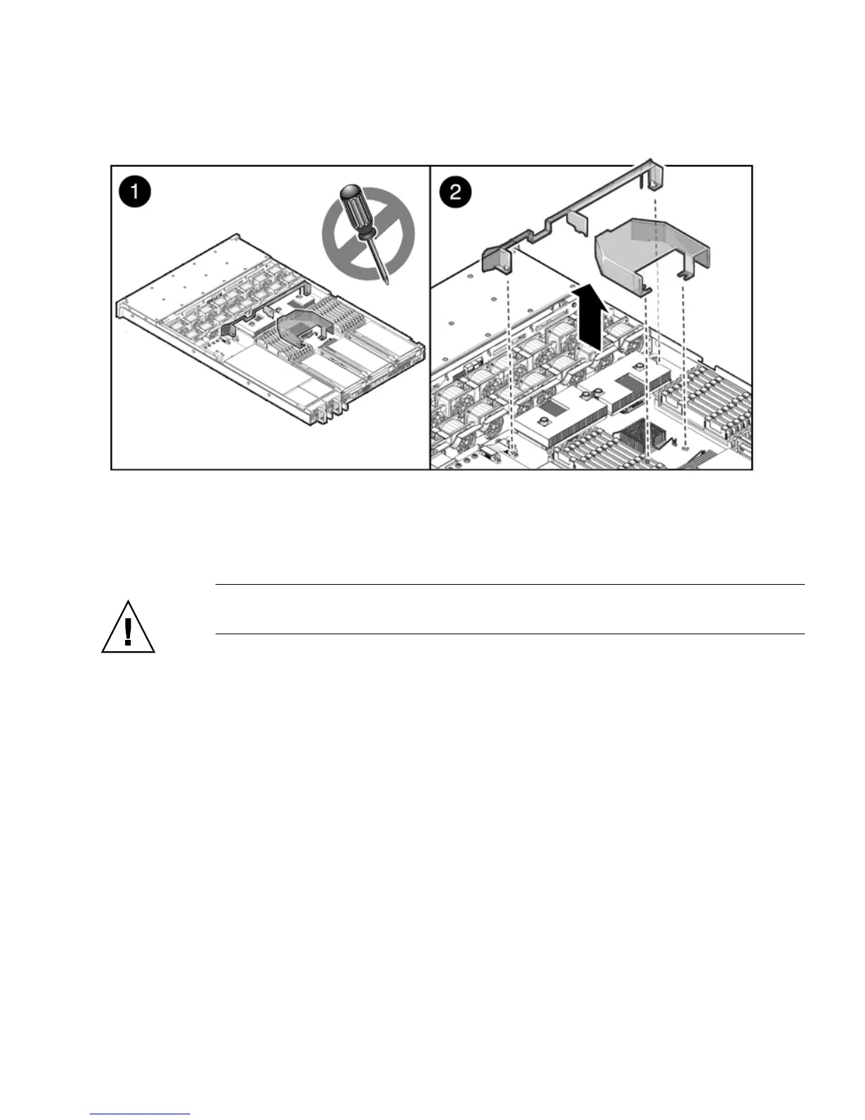 Caution – When the server is in operation, ensure that the air baffle is correctly