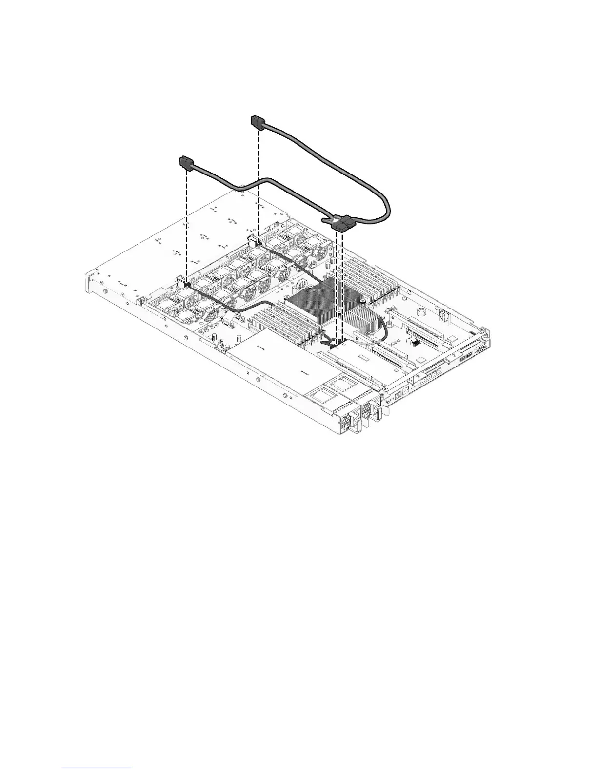 FIGURE 2-15 Installing the SAS PCIe/Hard Disk Drive Cage Cable Into the Sun Fire X4170 Server