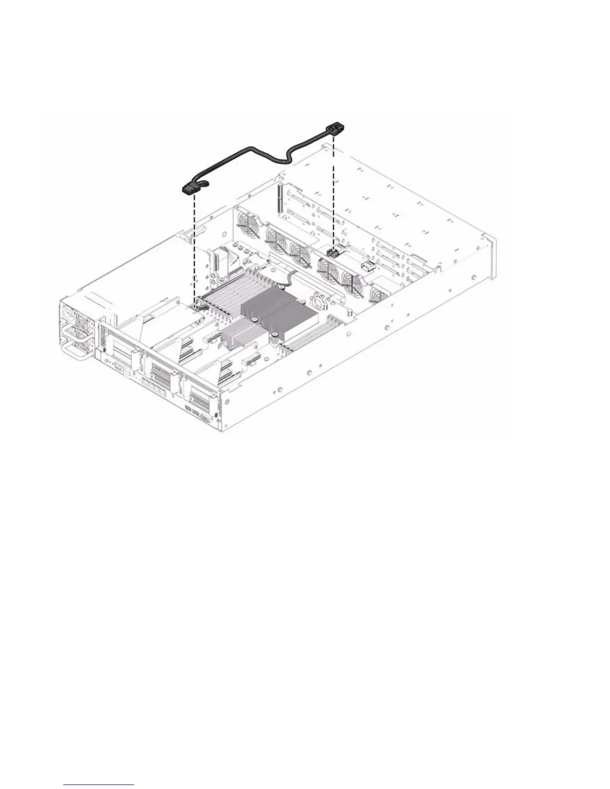FIGURE 2-16 Installing the SAS PCIe/Hard Disk Drive Cage Cable in the Sun Fire X4270 Server