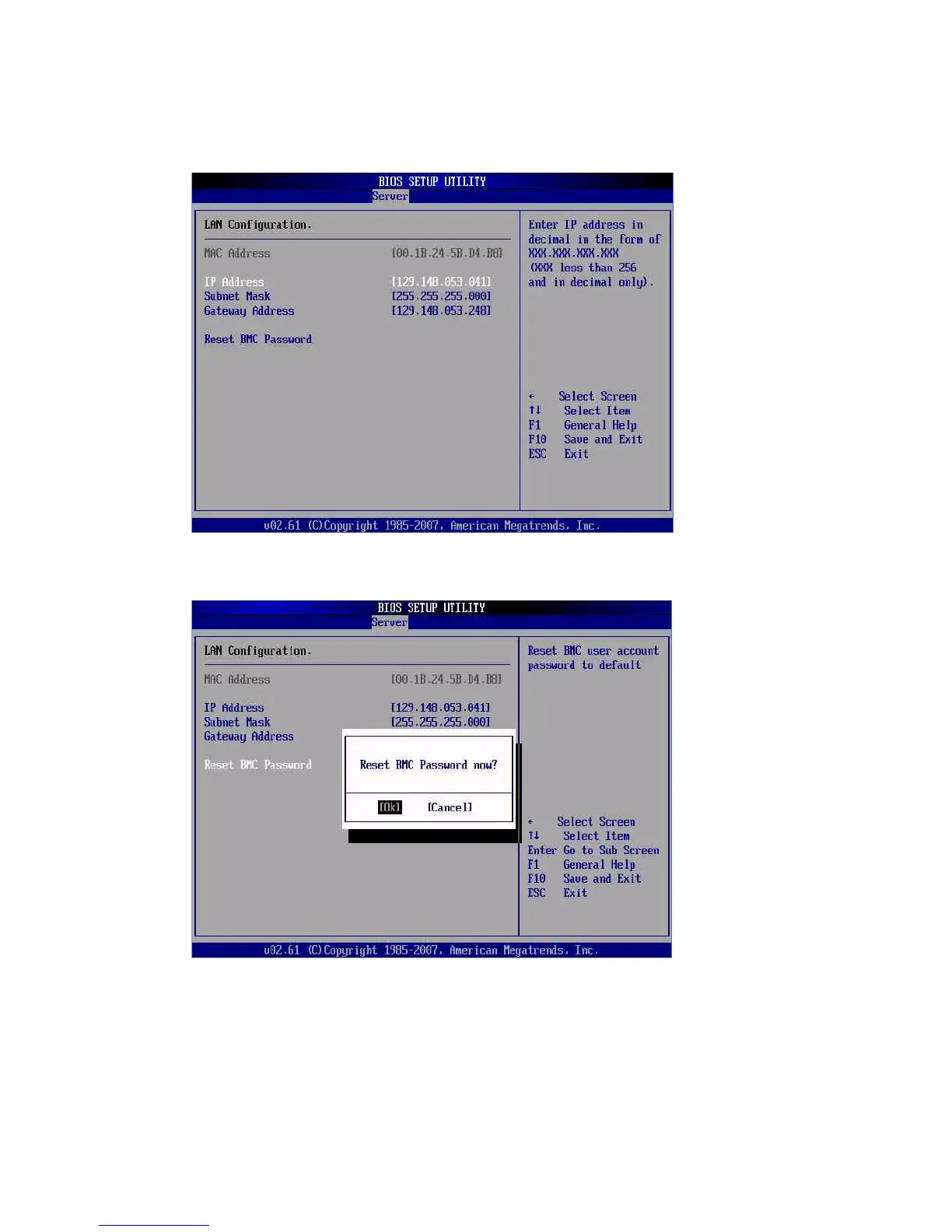 FIGURE C-22 BIOS Setup Utility: Server - LAN Configuration - Reset SP (BMC) Password