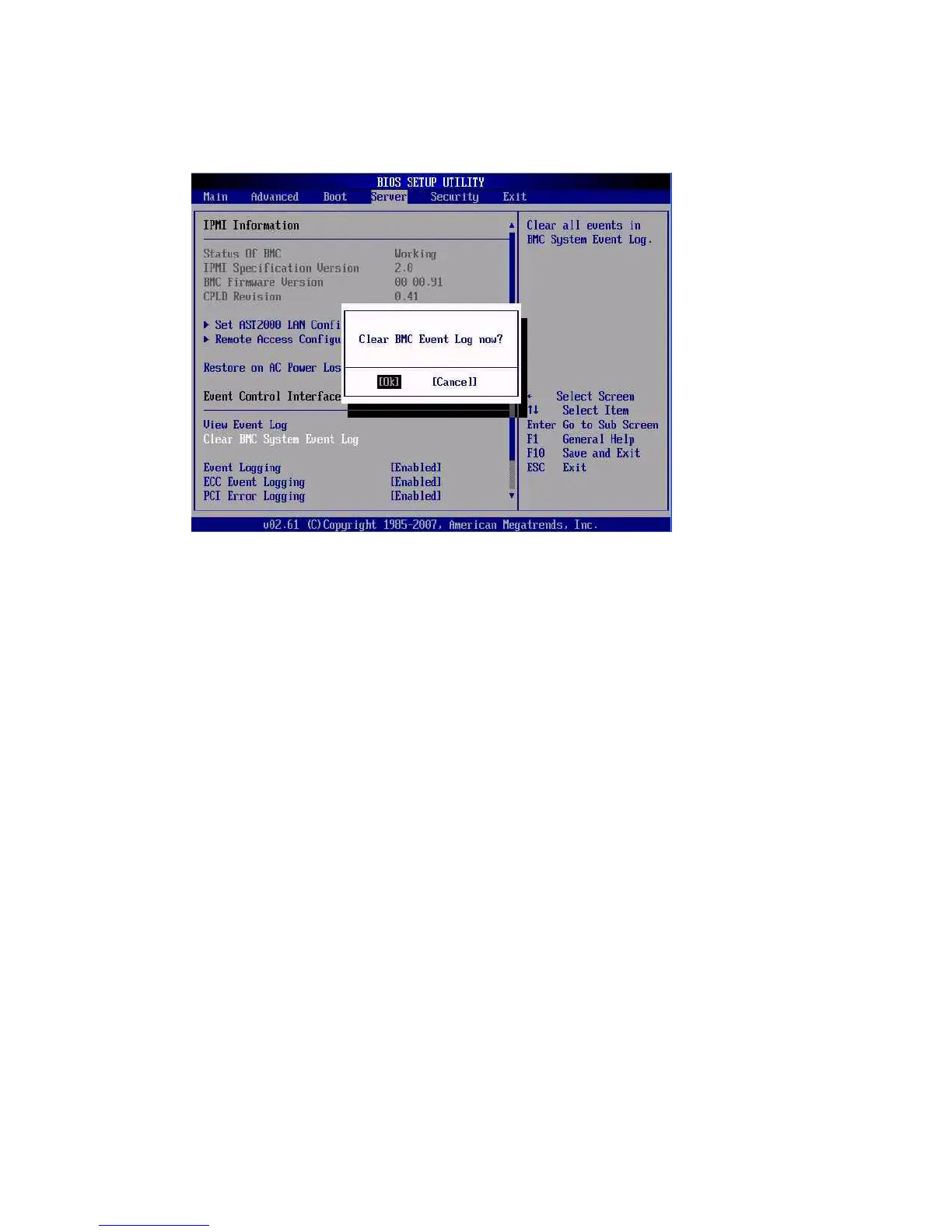 FIGURE C-25 BIOS Setup Utility: Server - Clear BMC Event Log