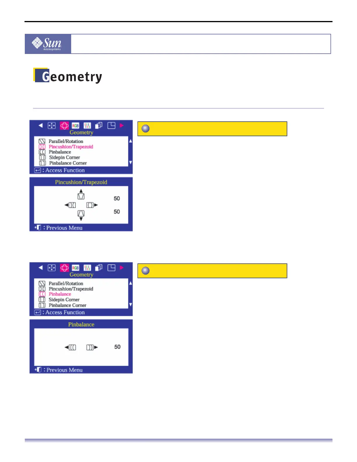 4. Push the Menu button to open the Pincushion/Trapezoid