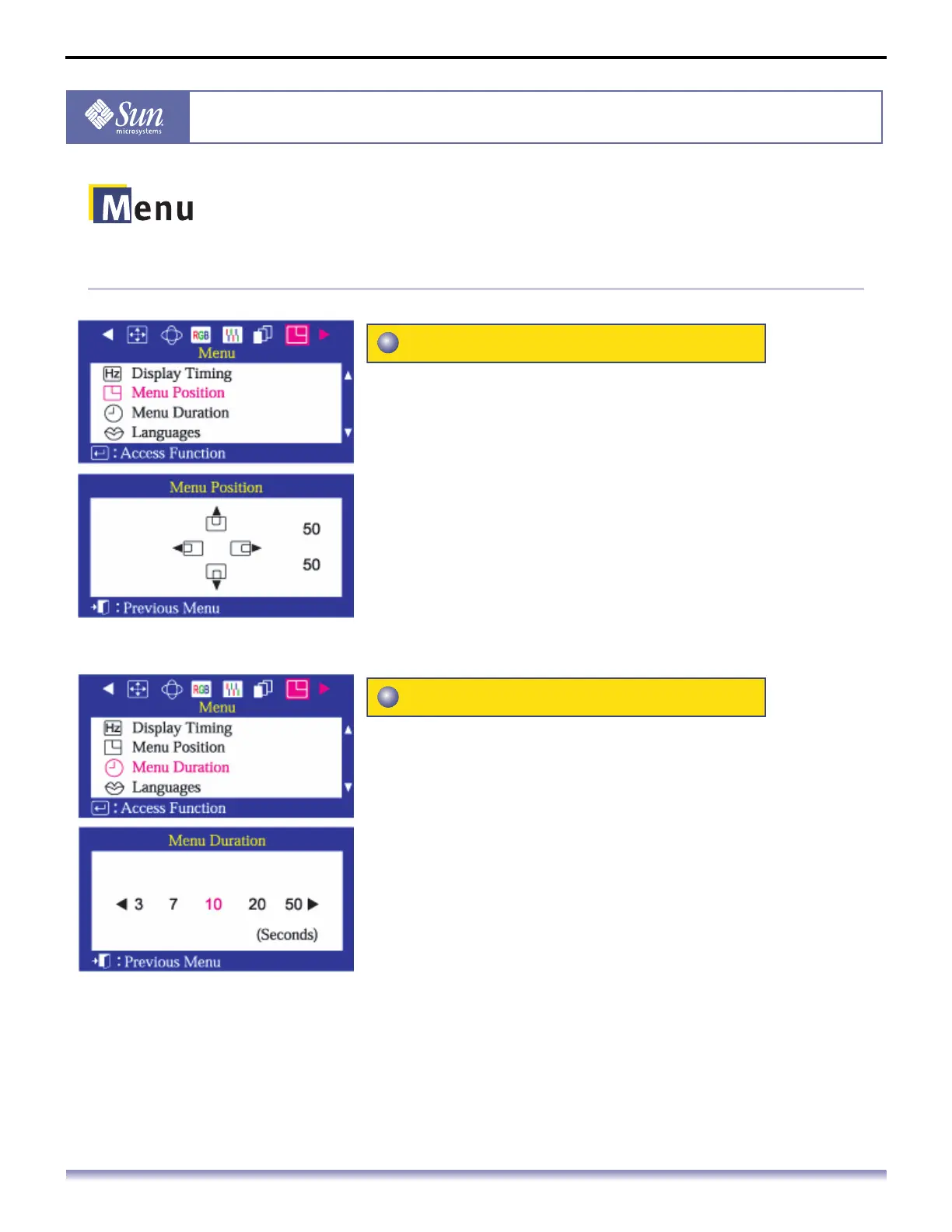 4. Push the Menu button to open the Menu Position