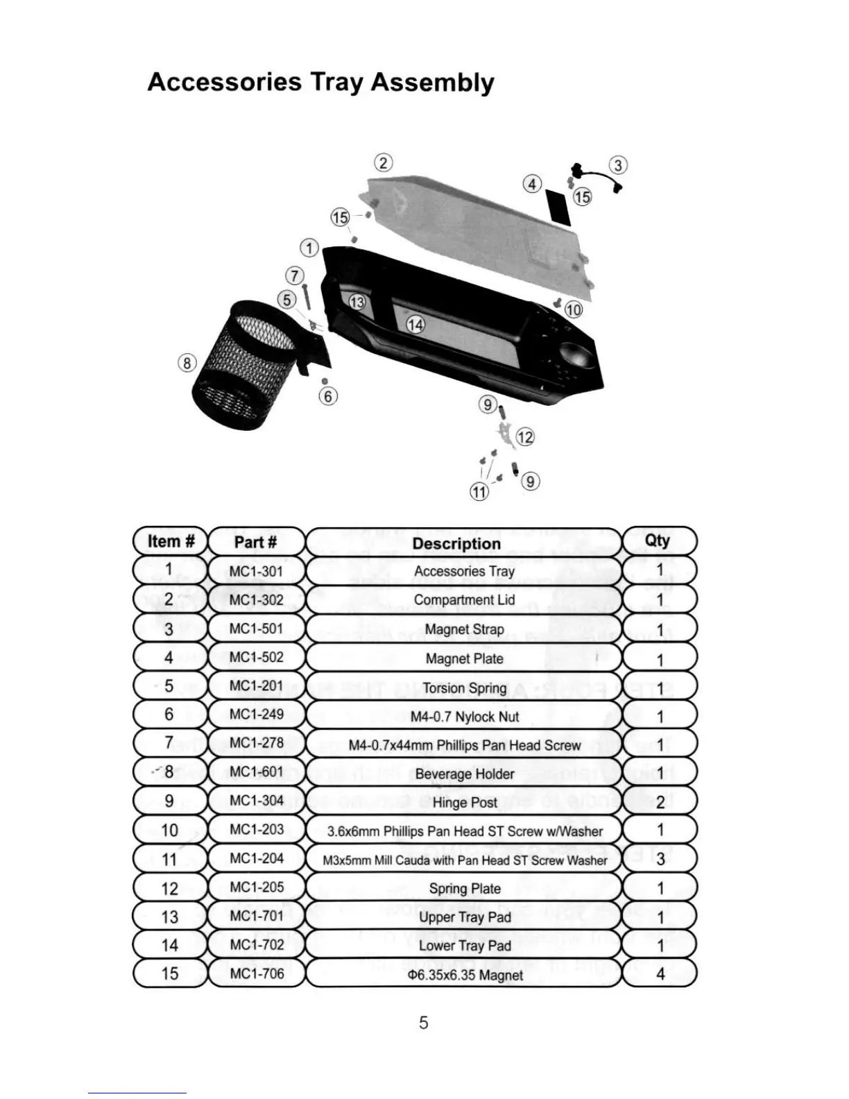 Sun Mountain Micro Cart - Accessories Tray Assembly