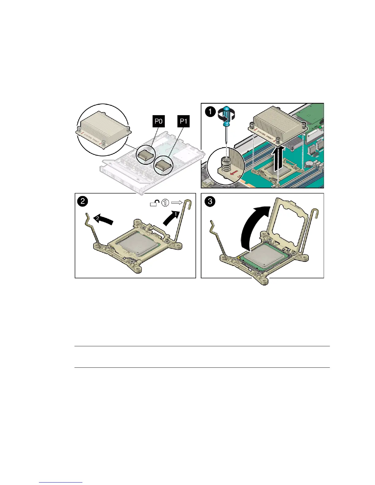 loosen the four Phillips captive screws in the heatsink for the processor [1].