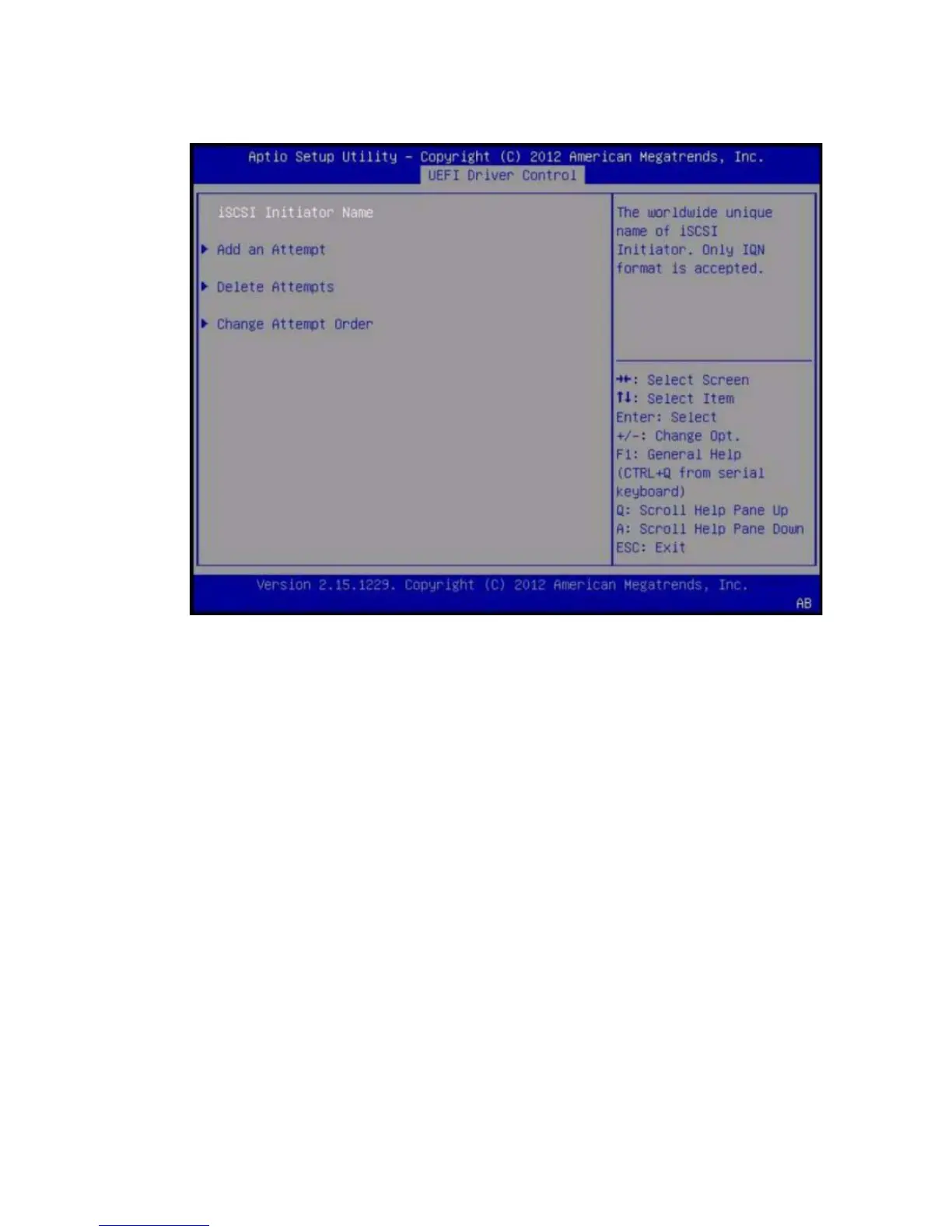 4. Select iSCSI Initiator Name, and then press Enter-.
