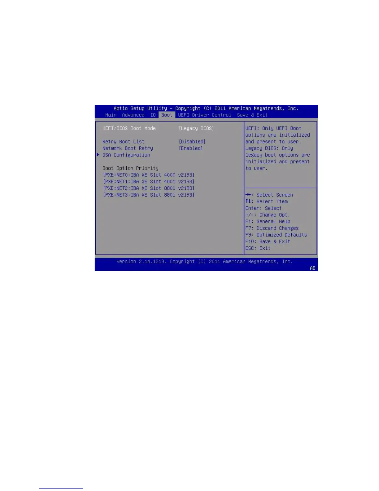 The OSA Configuration screen appears. The setting for OSA Internal Support is
