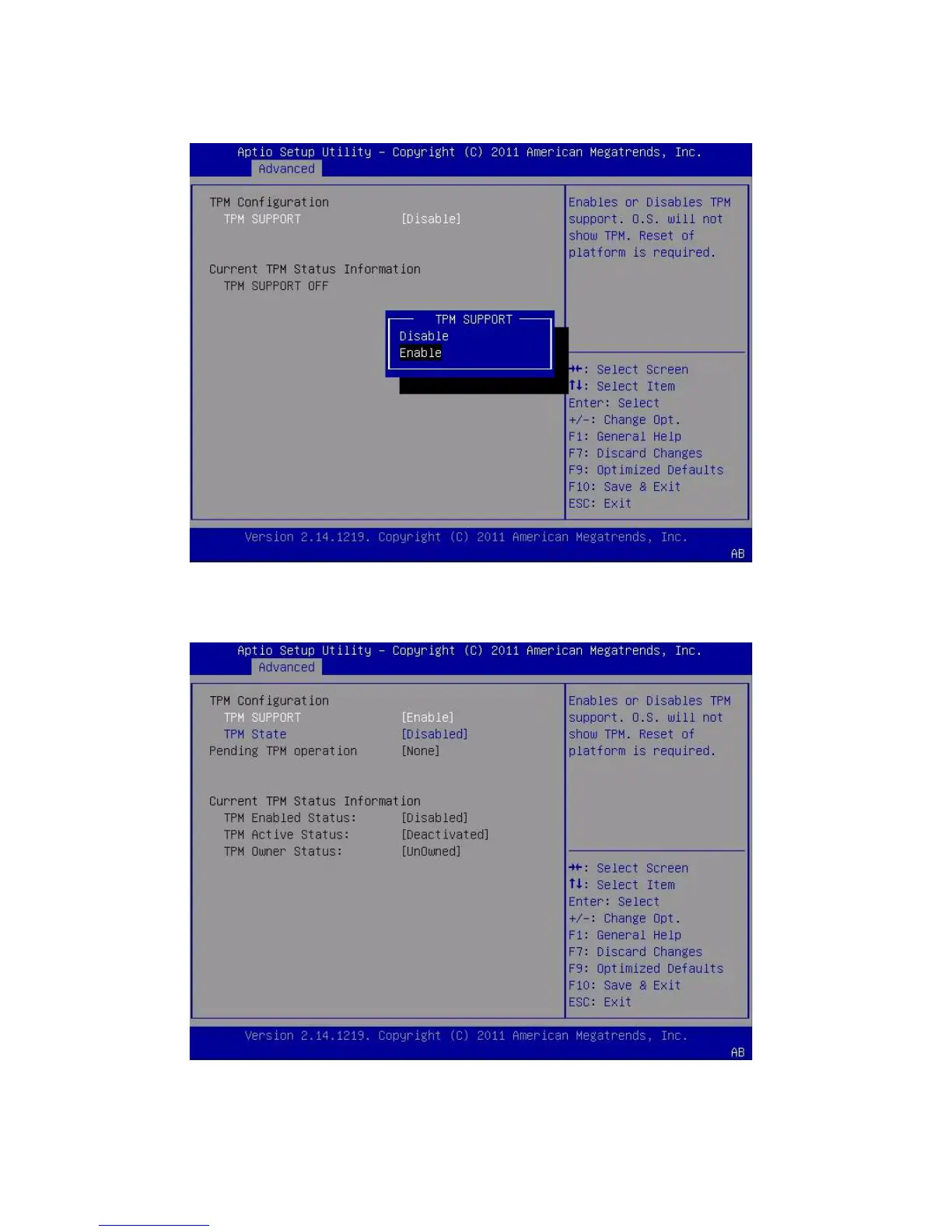 5. In the dialog box, set TPM Support to Enable, and then press Enter.
