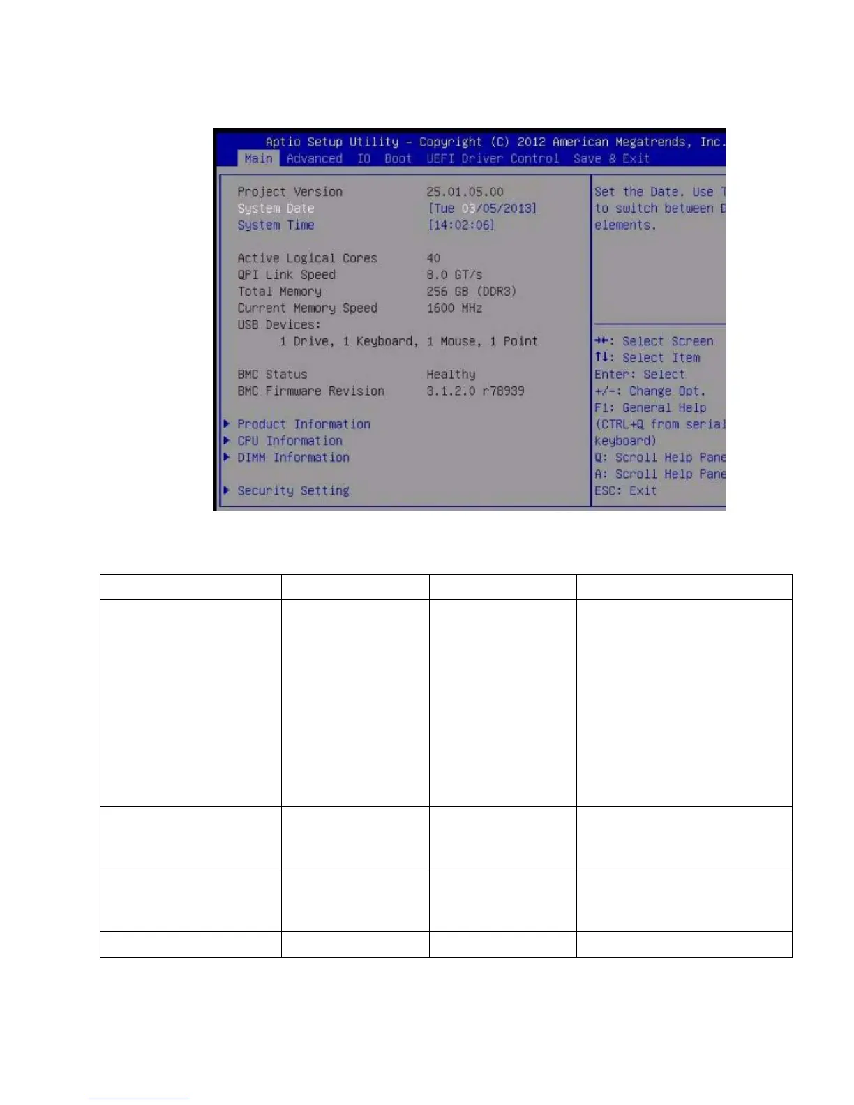 TABLE: BIOS Main Menu Options