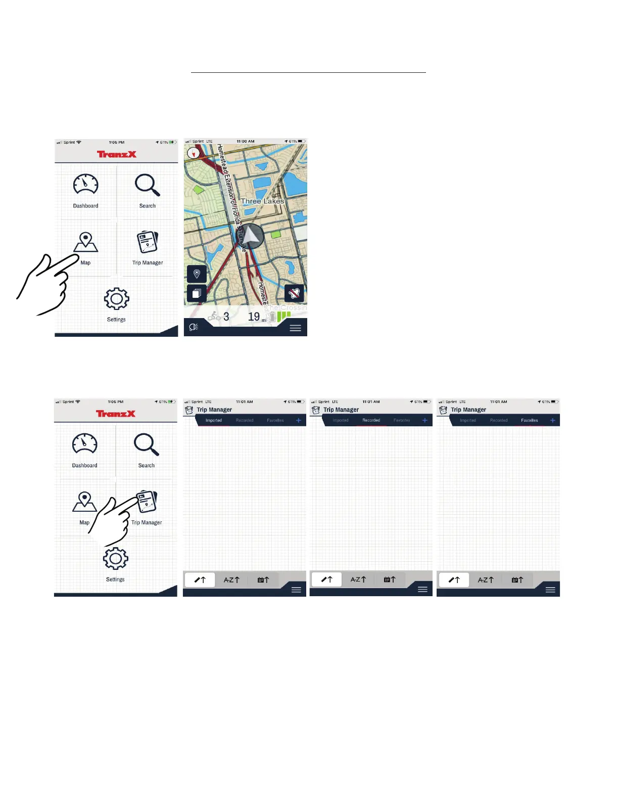 8.TaptheTripManagertoaccessyourImported,RecordedandFavoritesroutes.