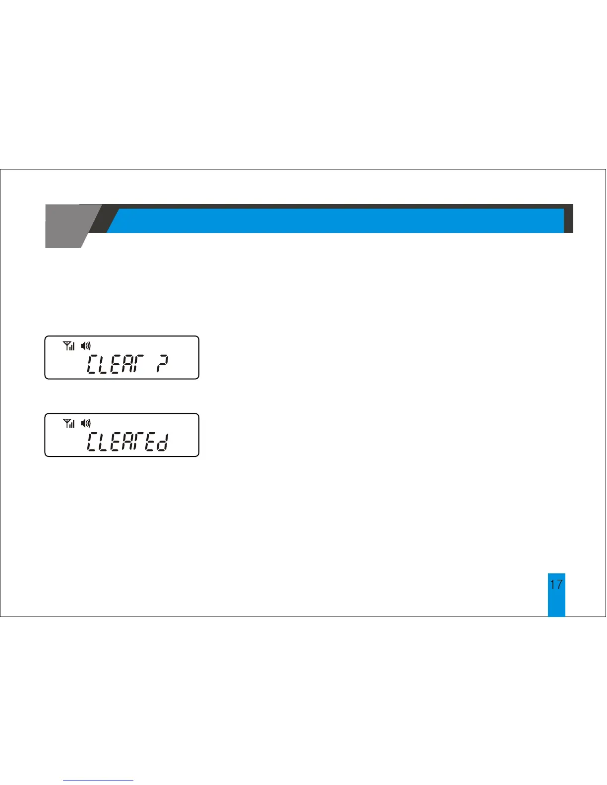 The display will show the prompt "CLEARED" to