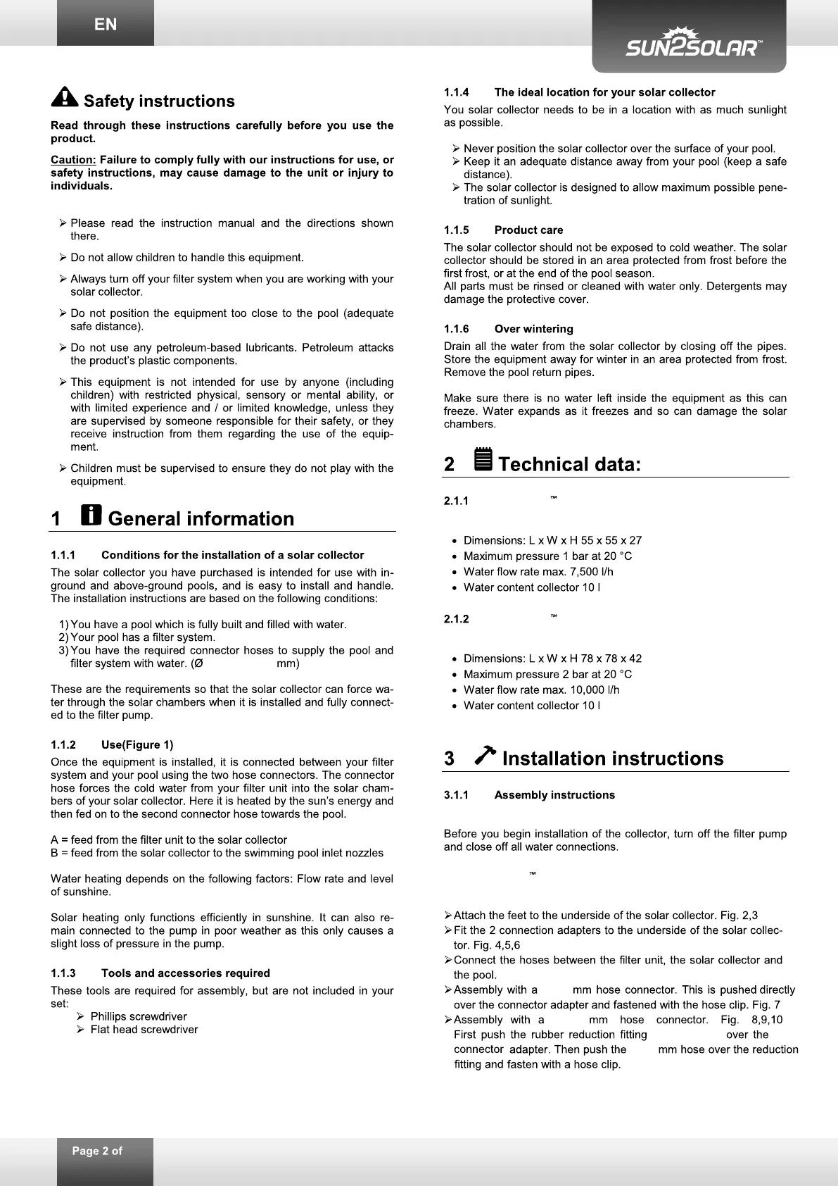 Sun2Solar MLR-T91-SD01 - Safety instructions; General information; Conditions for the installation of a solar collector; Use (Figure 1)