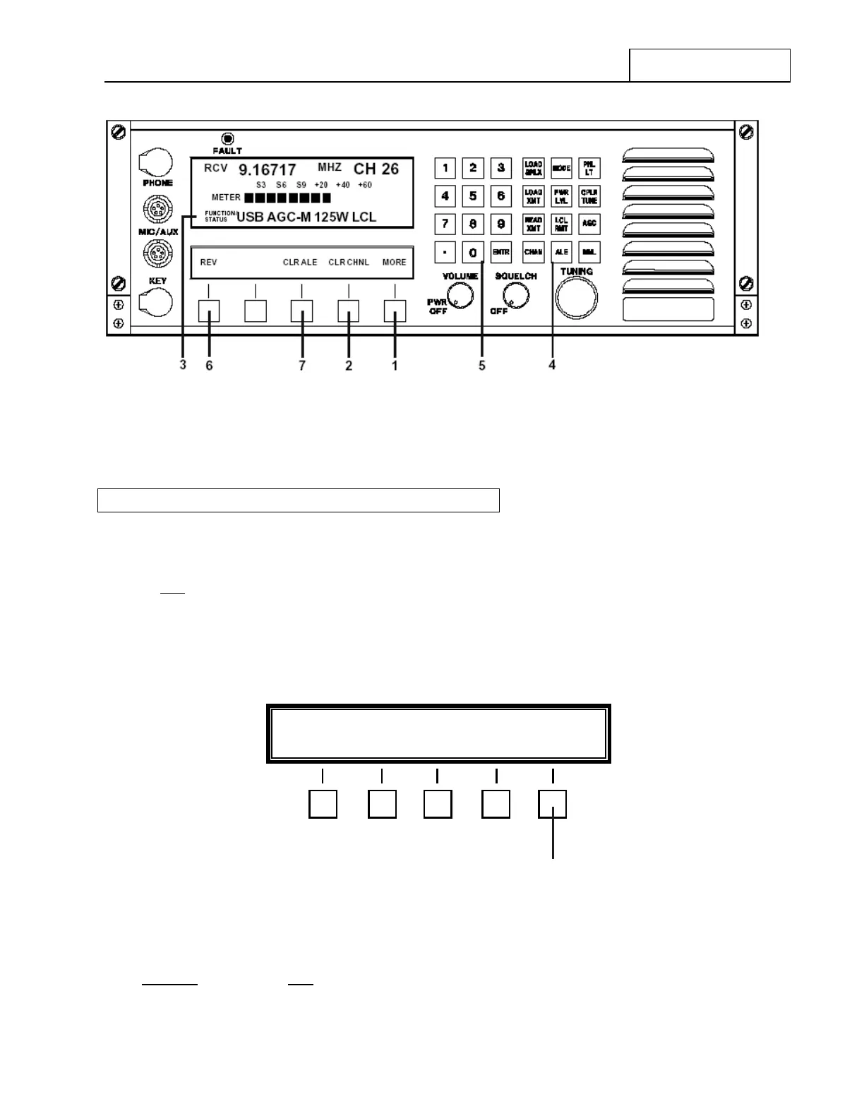 Depress the Clear Channel (‘CLR-CHNL’) key at 2 . The Operational Display at 3 will blank and the