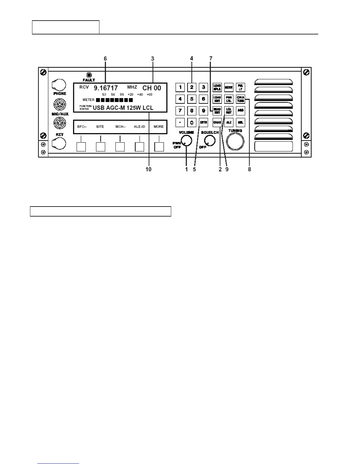 Depress Manual Channel key (‘M CH-’) at 3 . The Channel designator, ‘CH’ immediately preceding the