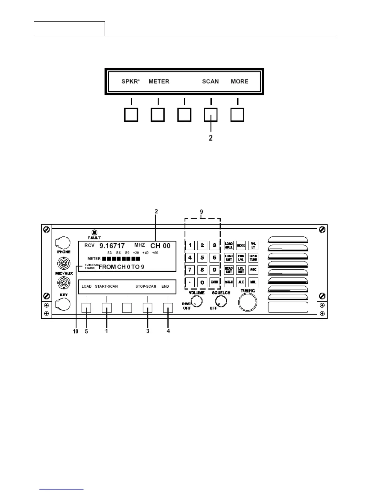 process, simply depress the ‘STOP SCAN’ key at 3 . To leave the Receiver Scanning function, depress the
