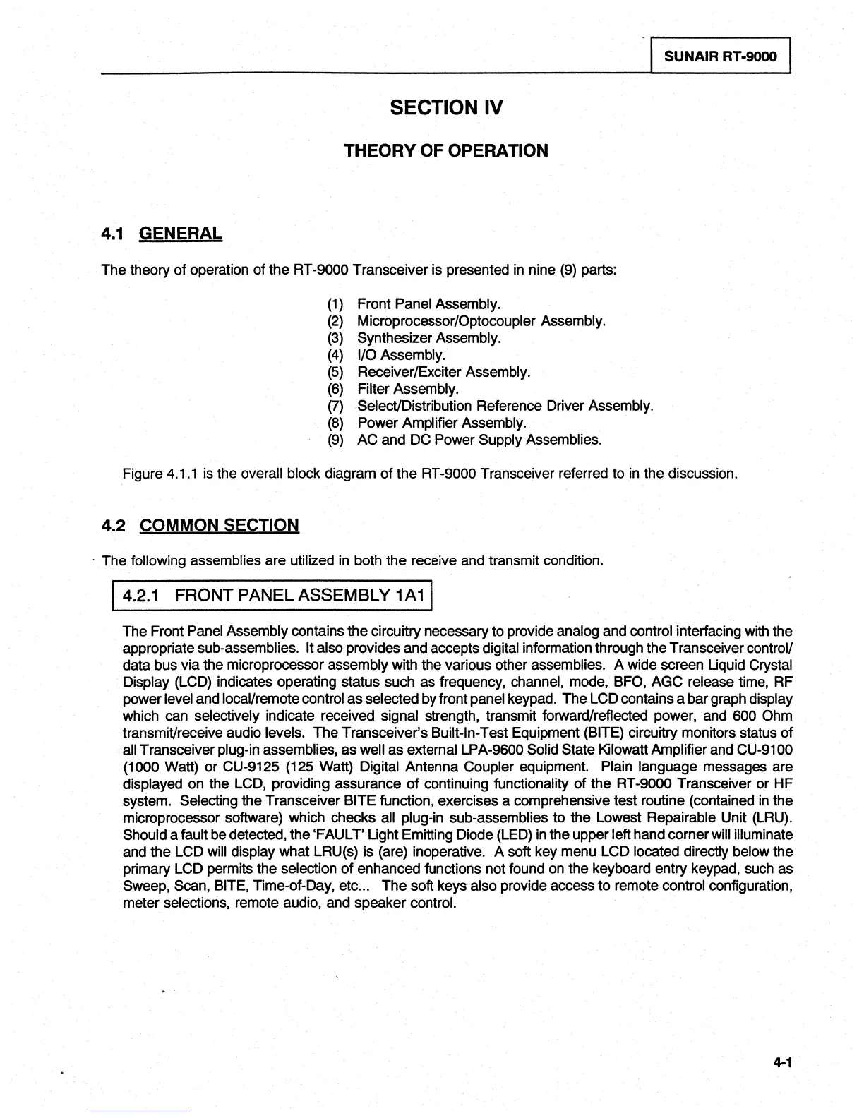 sunair RT-9000C - RT-9000 B Theory of Operation; RT-9000 B Common Section Theory