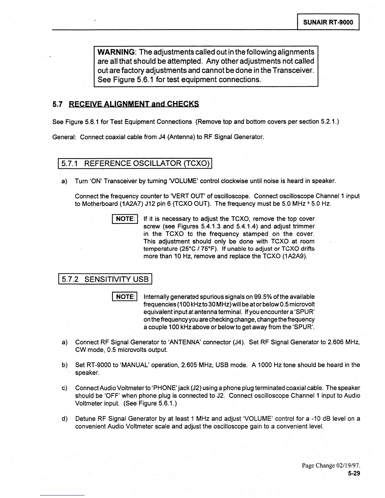 sunair RT-9000C - RT-9000 B Receive Alignment and Checks