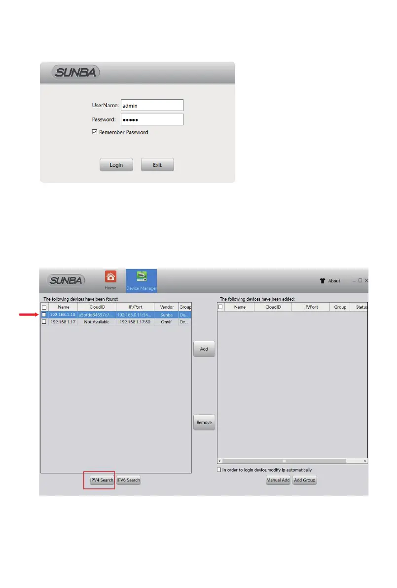 Click “IPV4 Search” and select the camera, then click “add” to connect the