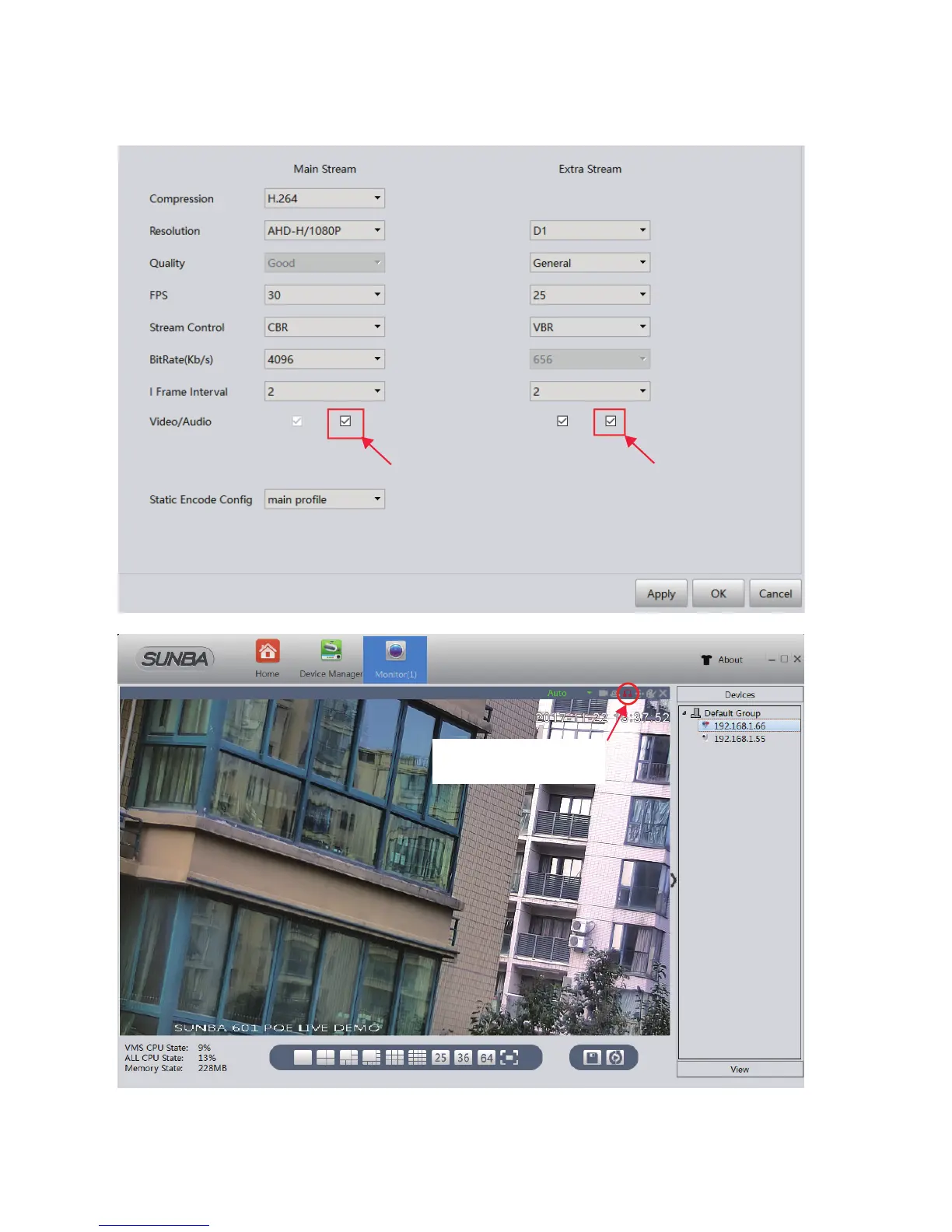 SUNBA 405-D20X - B. Setup: how to enable the audio at camera after installation?
