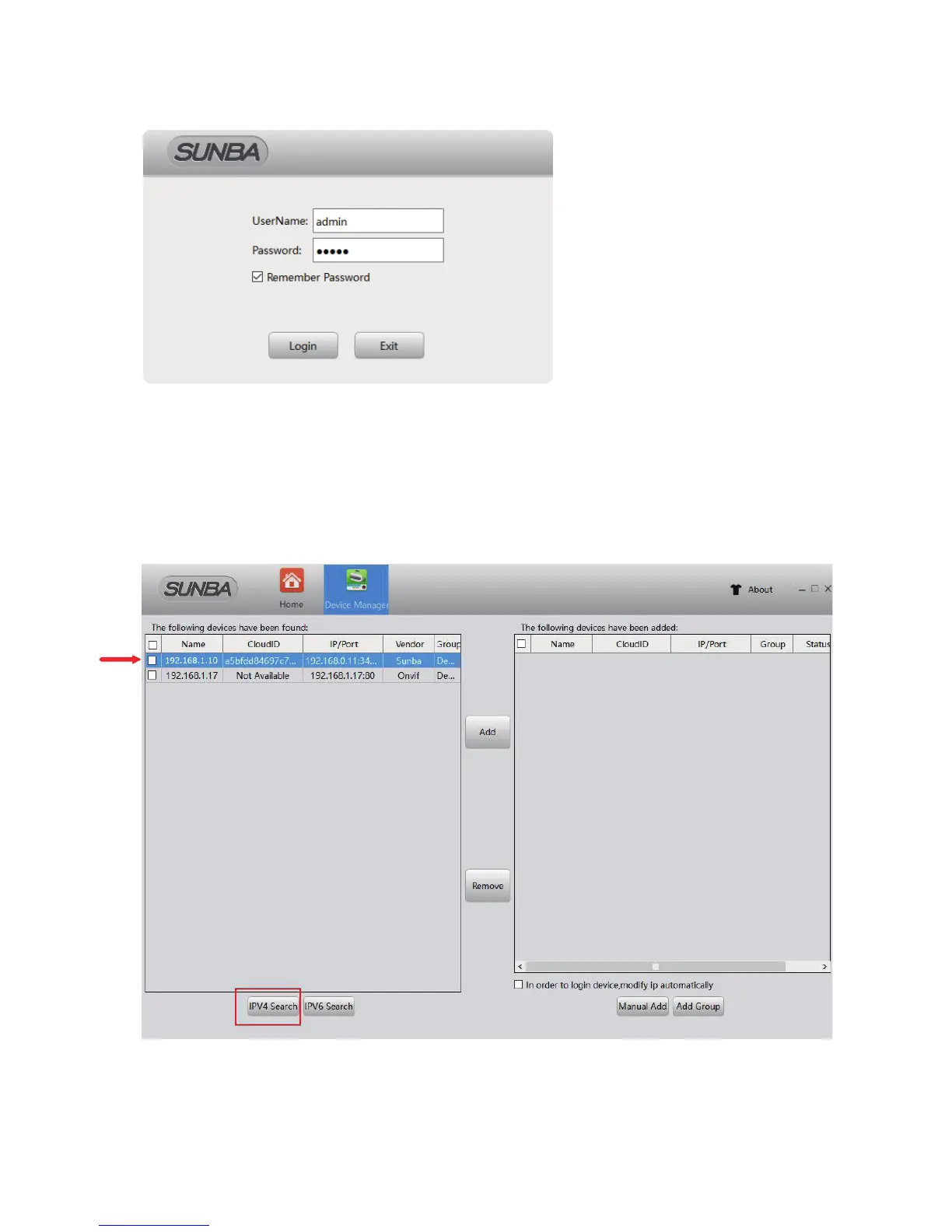 Click “IPV4 Search” and select the camera, then click “add” to connect the