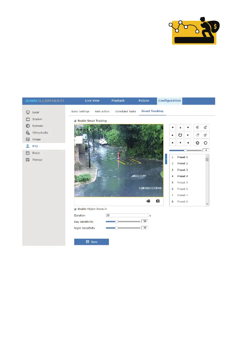 Activate tracking in Configuration-PTZ-Smart Tracking. It is recommended