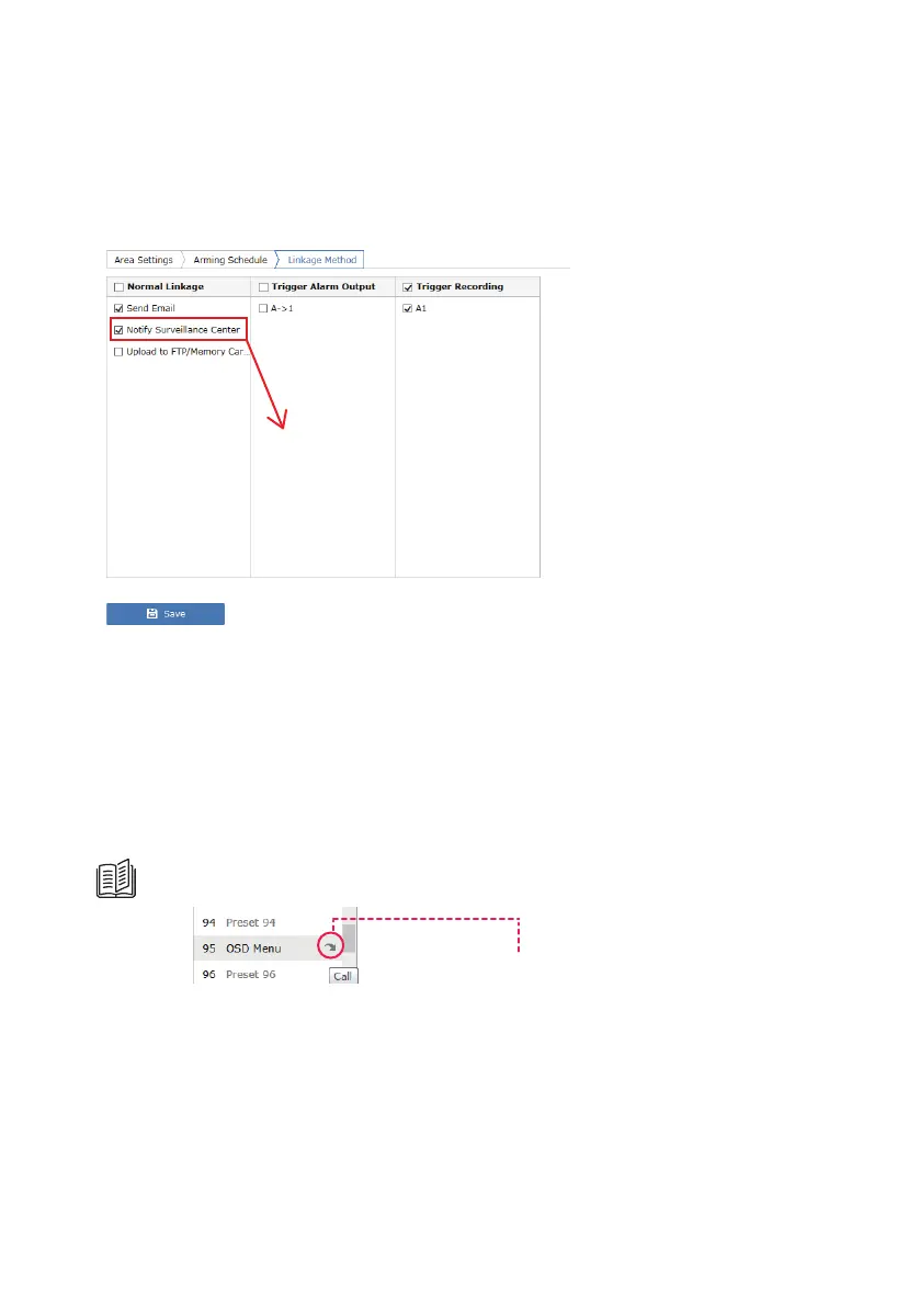 Please call preset 95 to open the OSD menu. Use the up and down key to