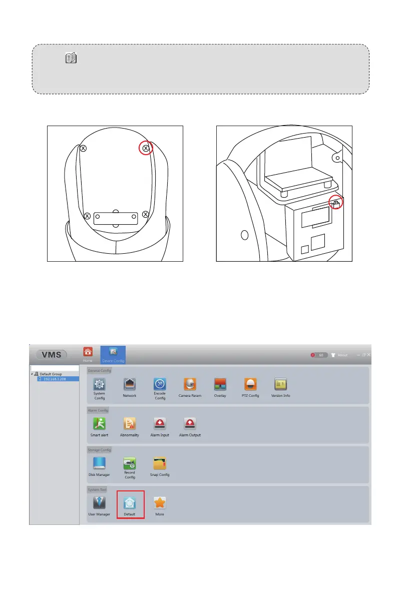1. Please manually press the button to default the camera as shown below