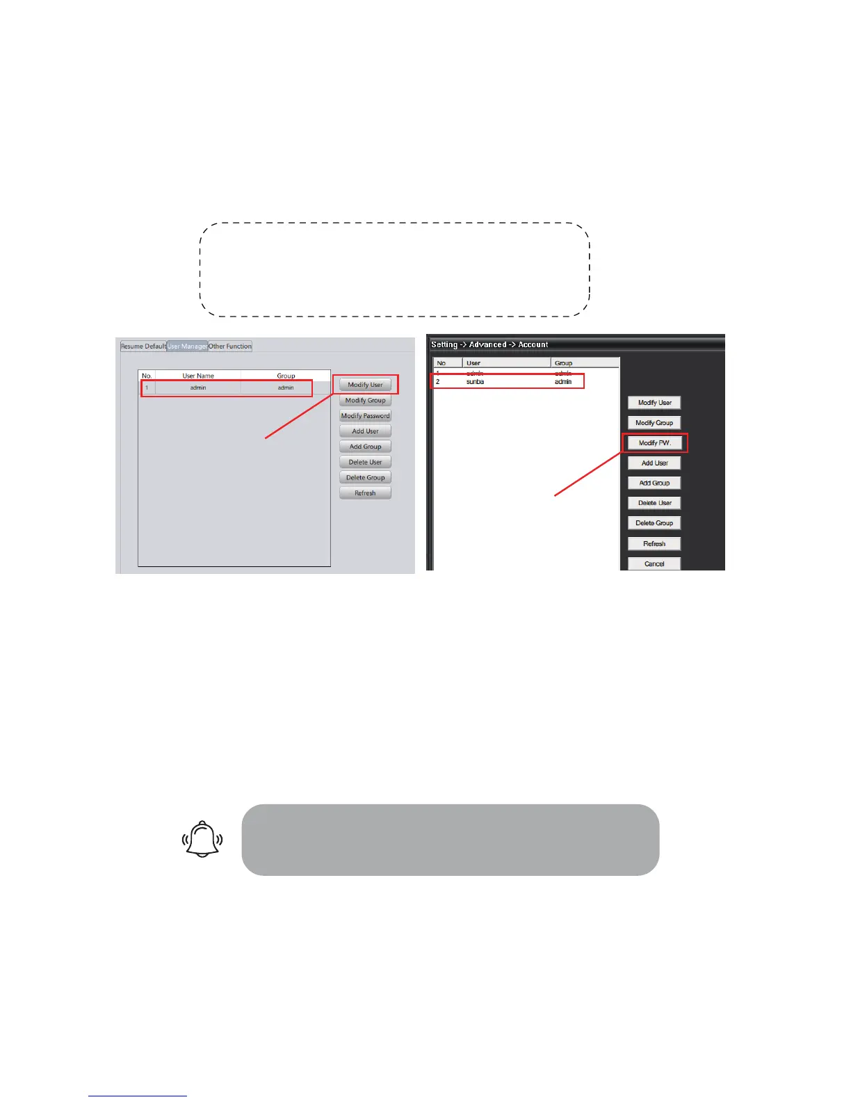 CMS/IE:Device Cong-> Account VMS:Device Cong->Tool Manager->User Manager