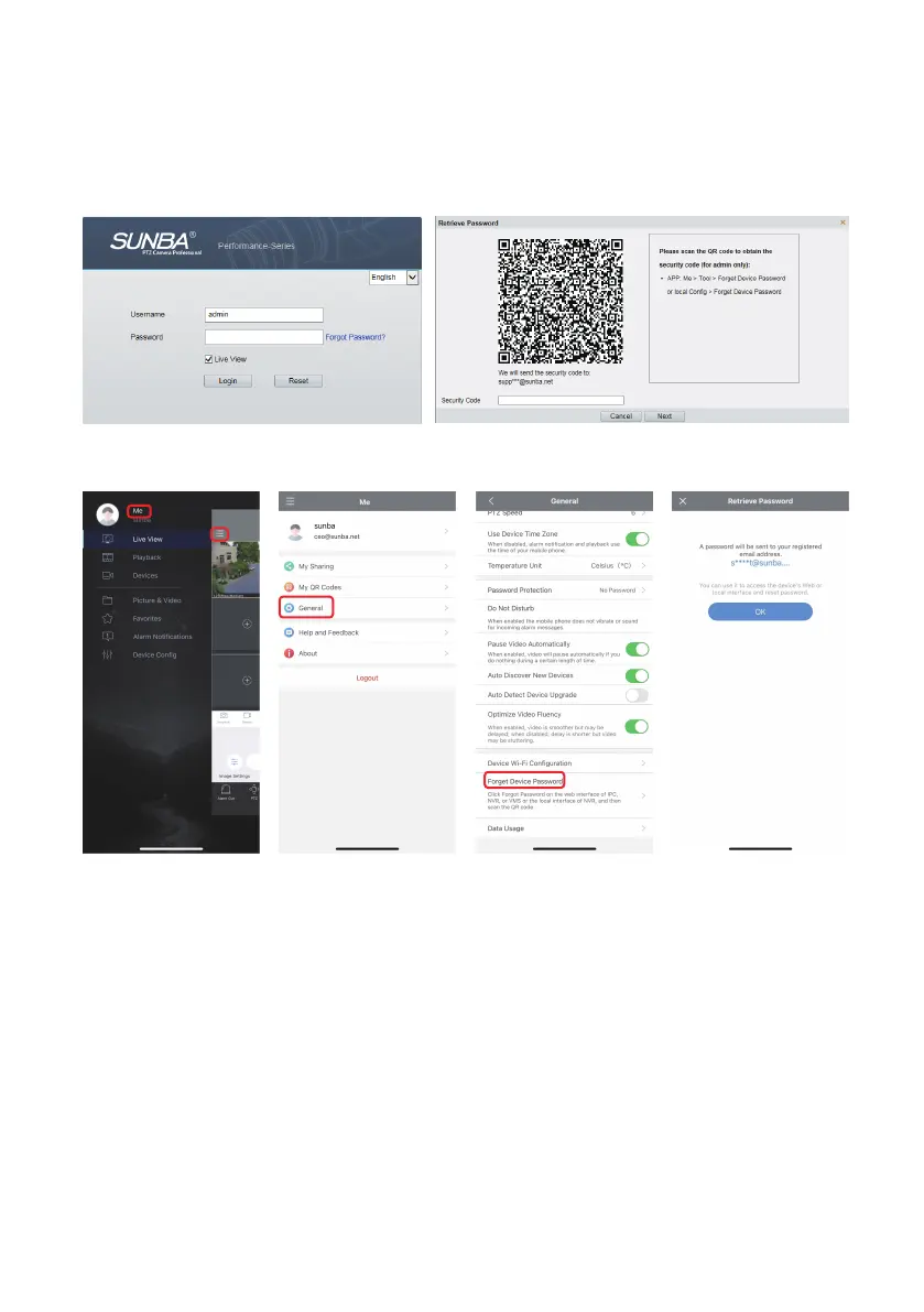 appears on the IP camera to support@sunba.net obtain a temporary access code.