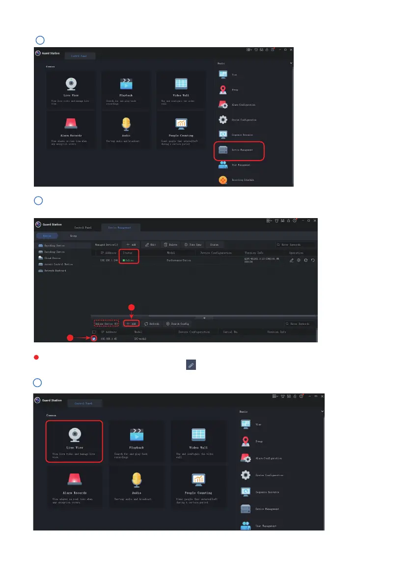 Please proceed to the “Device Management” tab to add your IP camera to the client soware: