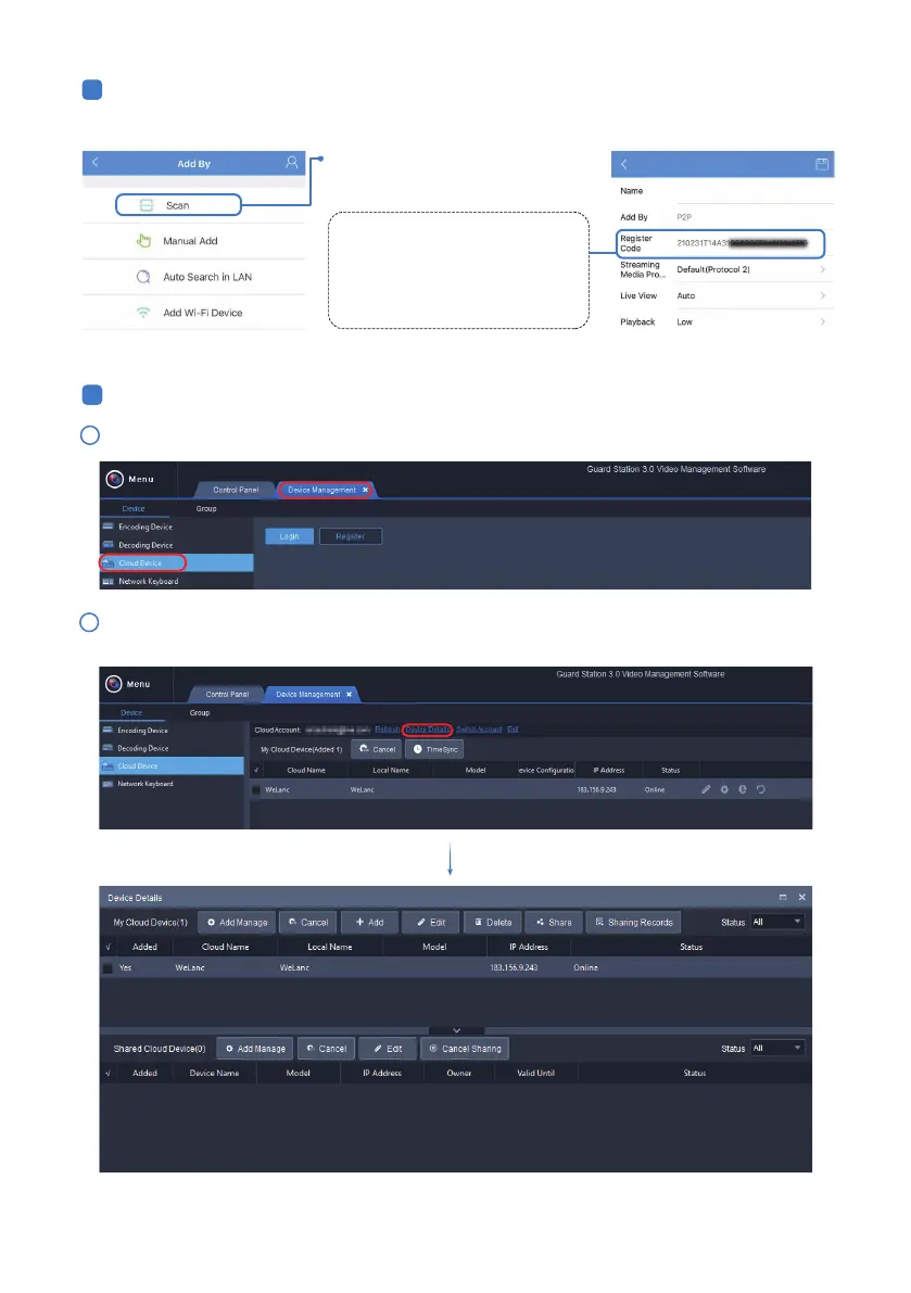 In the Guard Viewer app, please register an account first, and then prompt to add device, and select scan.