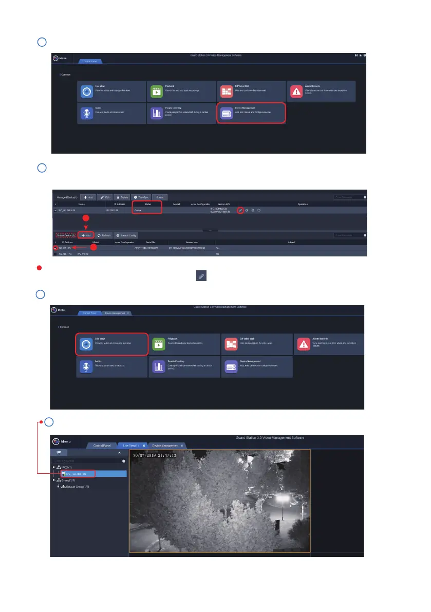 Please proceed to the “Device Management” tab to add your IP camera to the client soware: