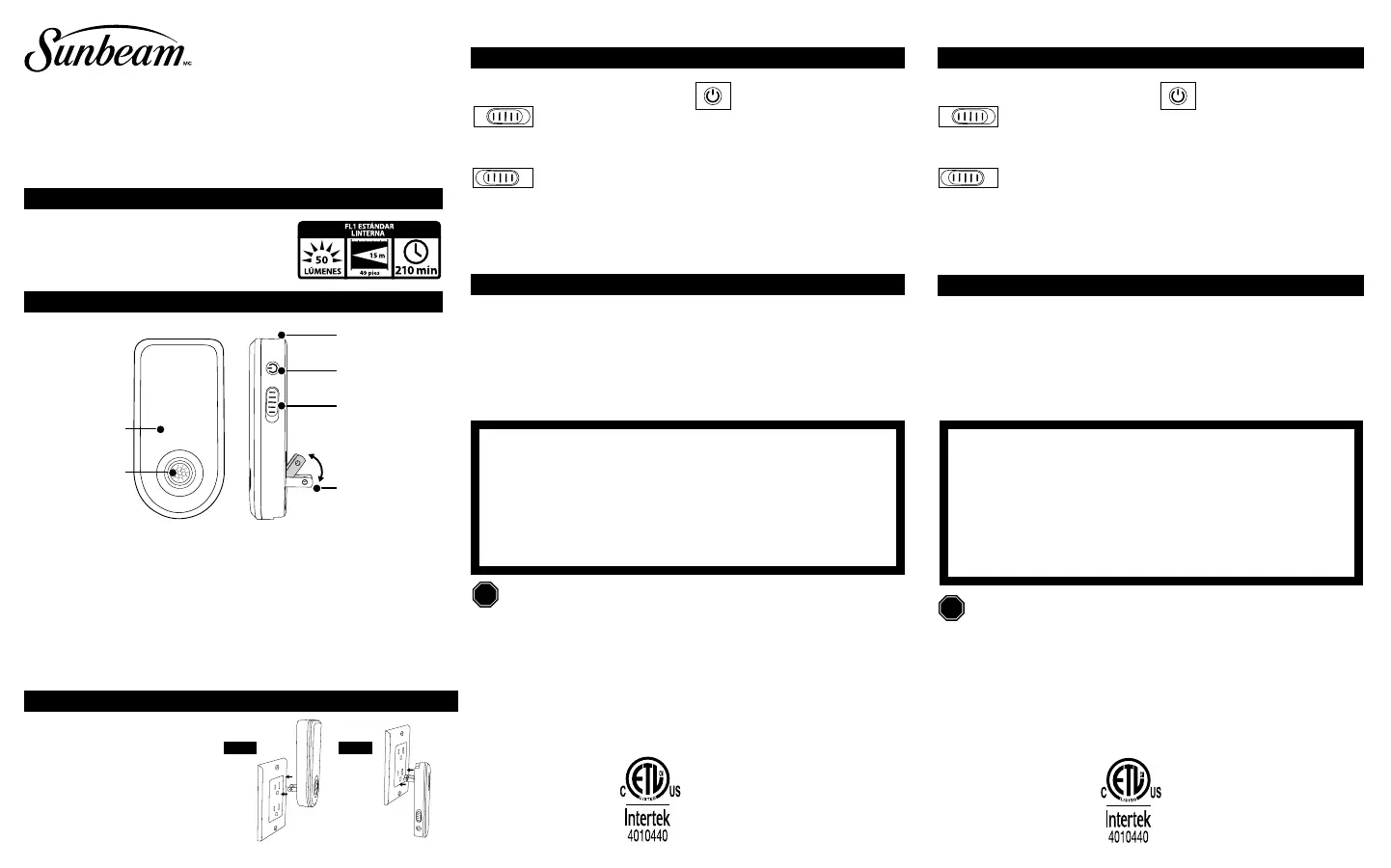 Gracias por comprar la luz de emergencia/luz nocturna de LED Sunbeam.