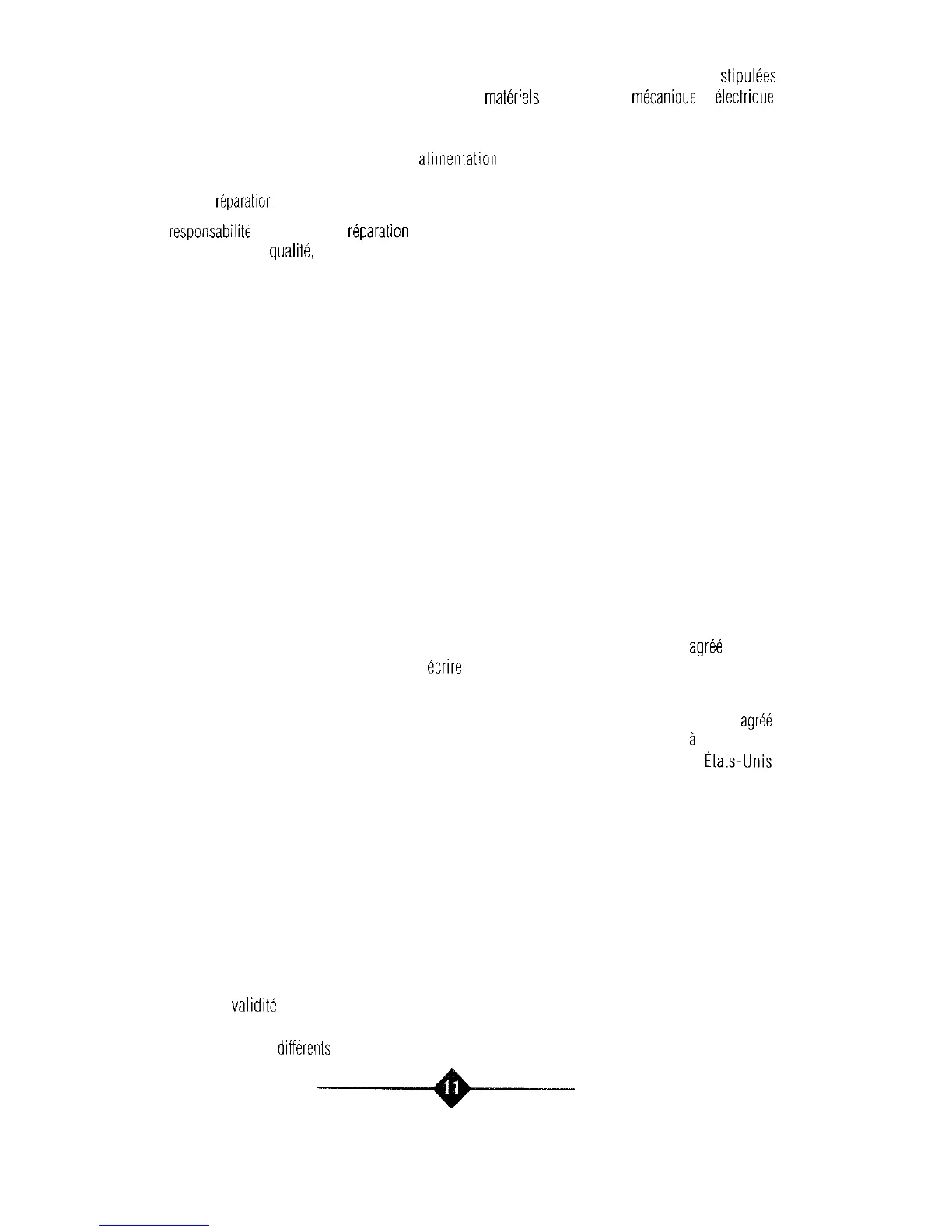 Notre responsabilite est limitée à la réparatron ou au remplacement de l’appareil par un modèle similaire de
