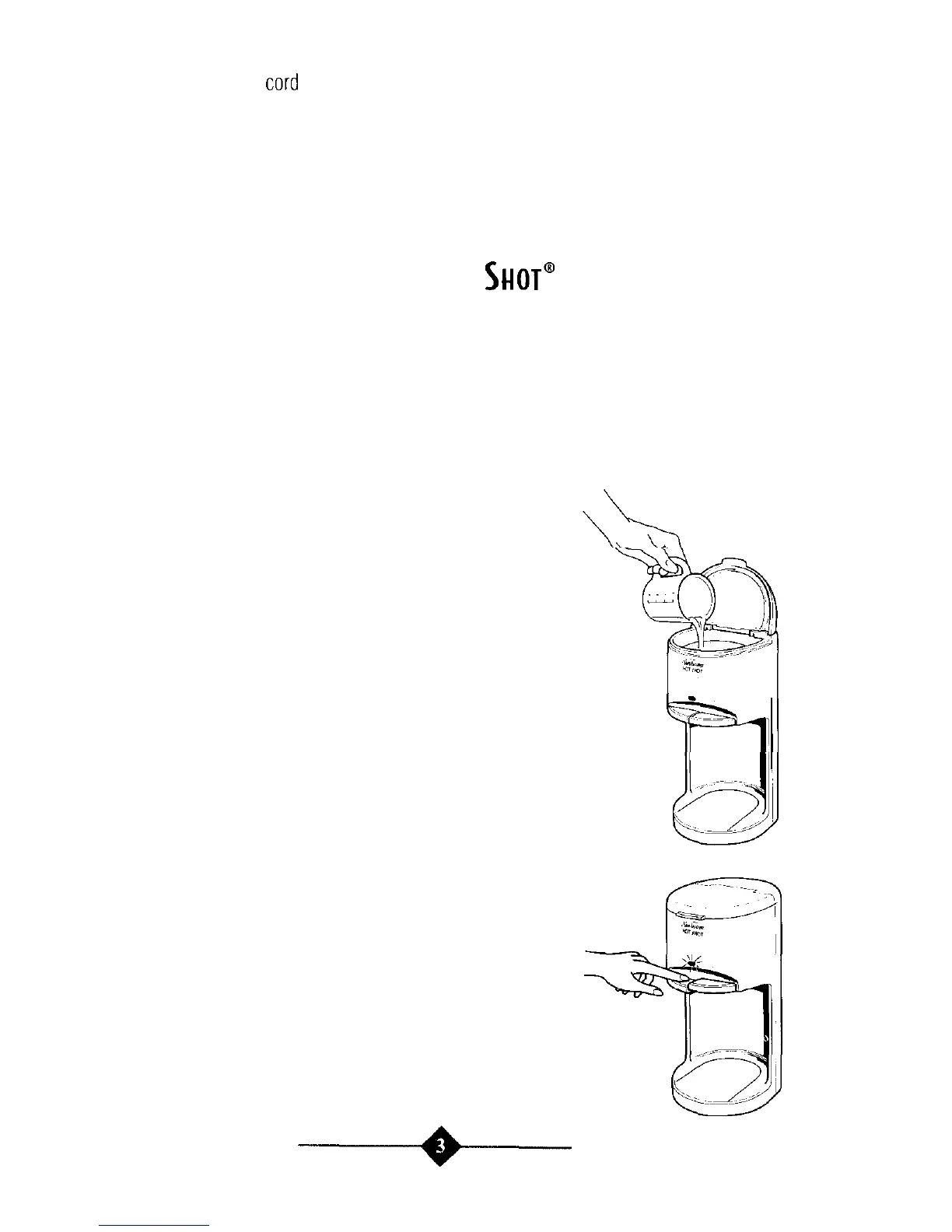 VERY IMPORTANT: Add water to the heating chamber BEFORE PLUGGING the hot water