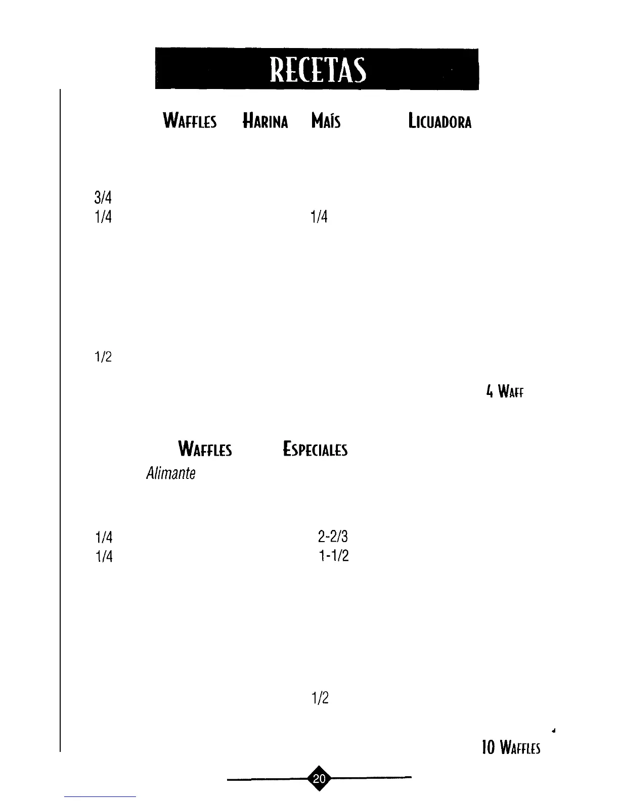 Precaliente la Wafflera. Vacíe en las rejillas 1/2 taza de masa. Cierre la Wafflera,