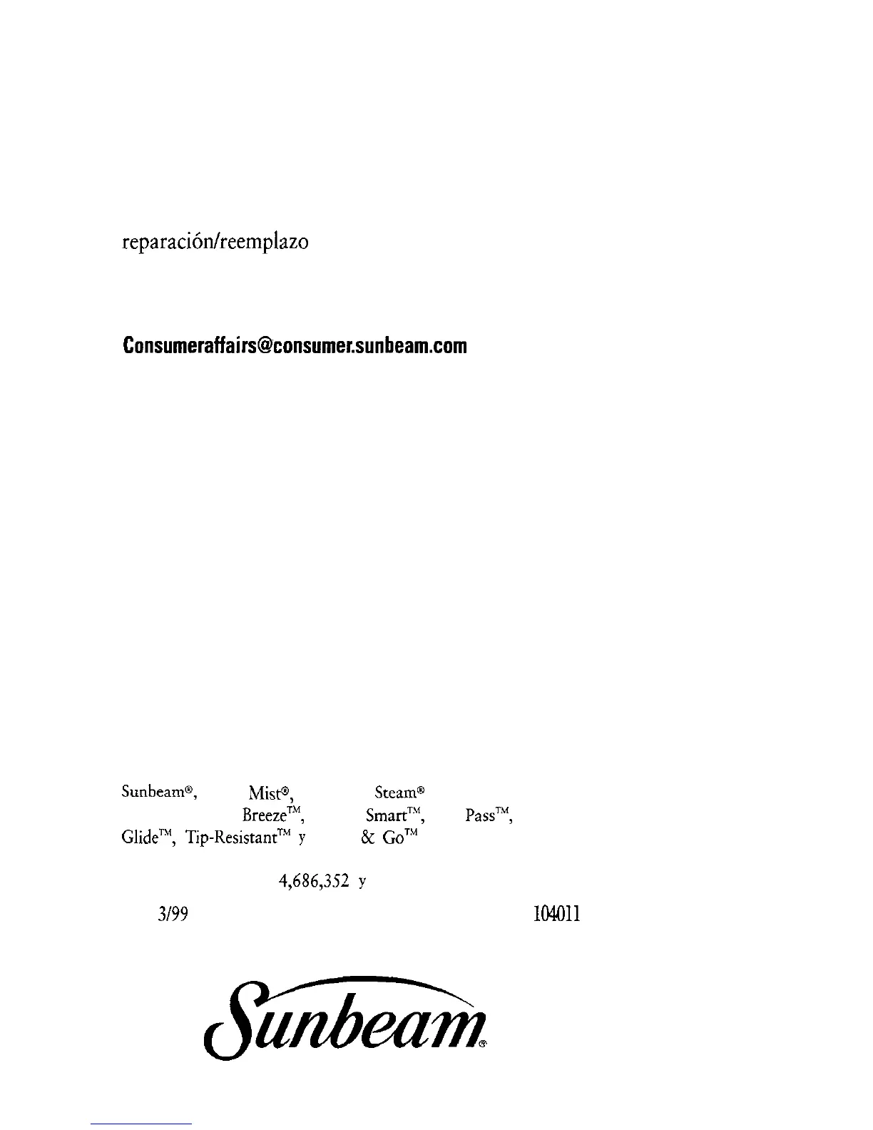 01999 Sunbeam Products, Inc. Todos los derechos reservados.