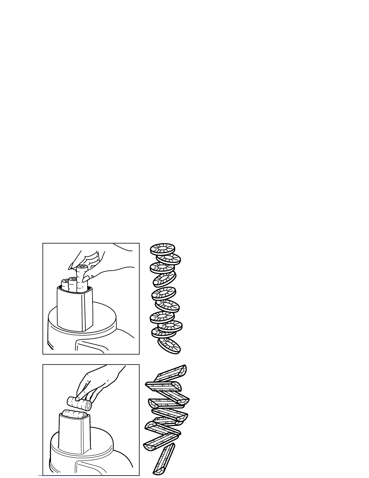 menos firmemente. Alimentos posicionados horizontalmente no tubo produzirão fatias