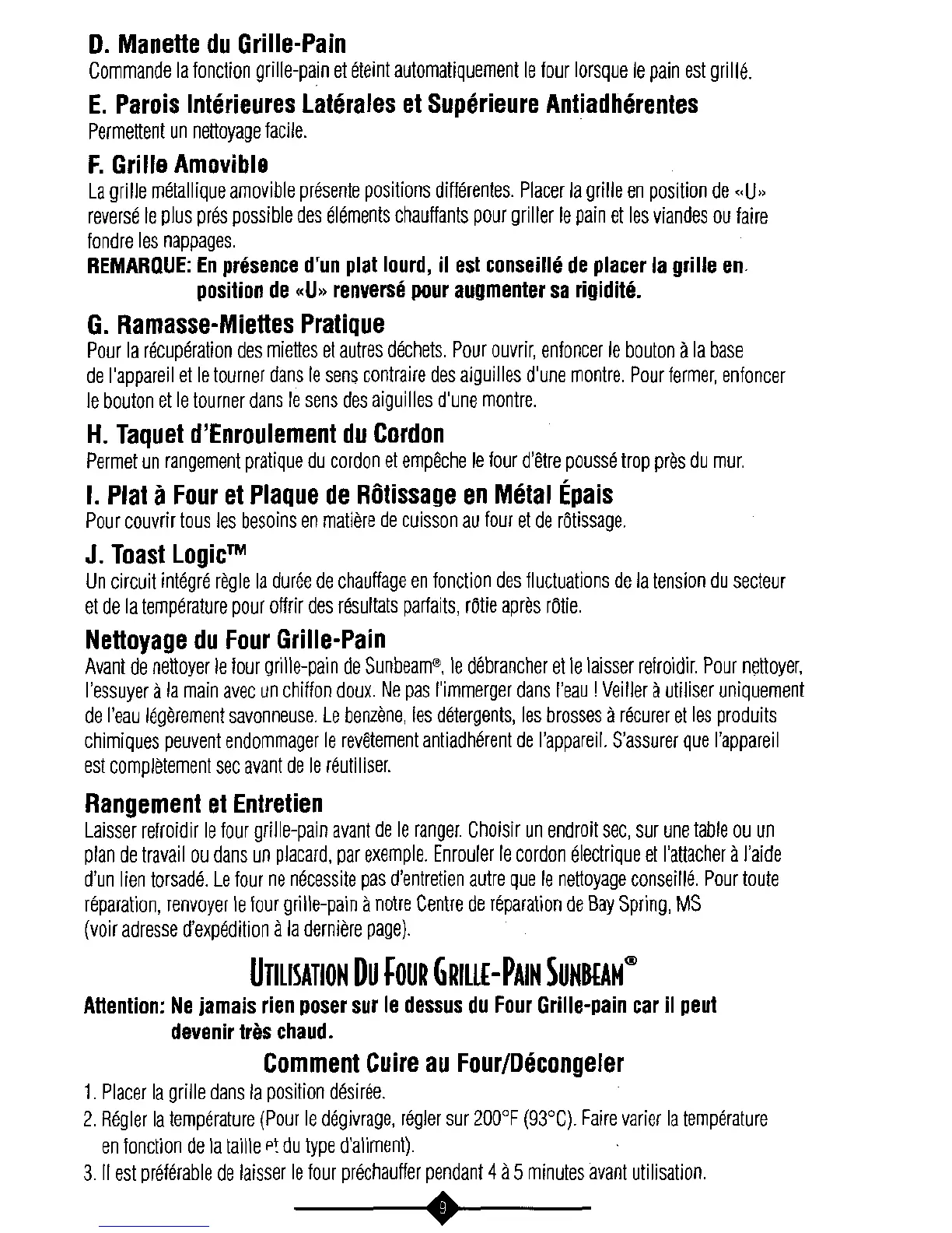 Avant de nettoyer le four grille-pain de Sunbeama, le debrancher et le laisser refroidir. Pour nettoyer,