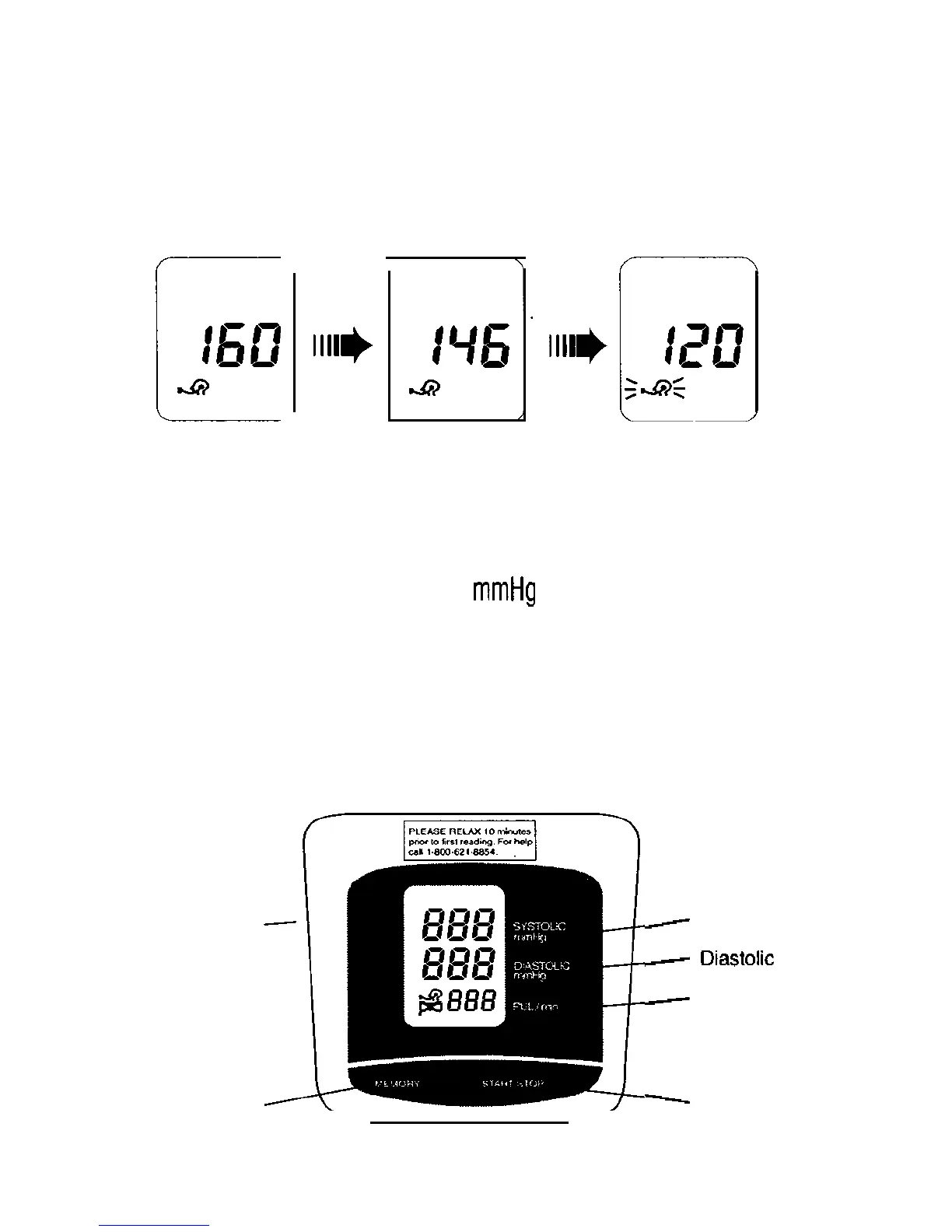 4. The Systolic Pressure is displayed on the upper portion of the display, the