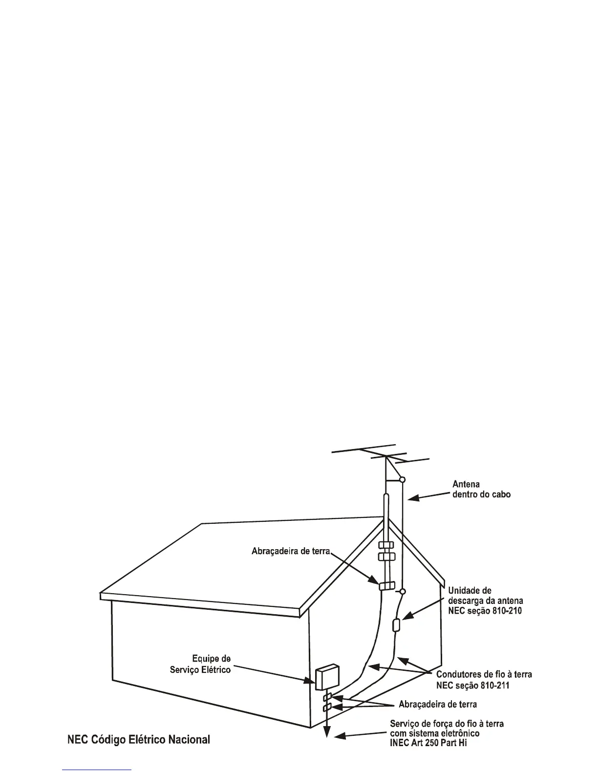 assegure-se de que o sistema da antena tenha conexão a terra como proteção