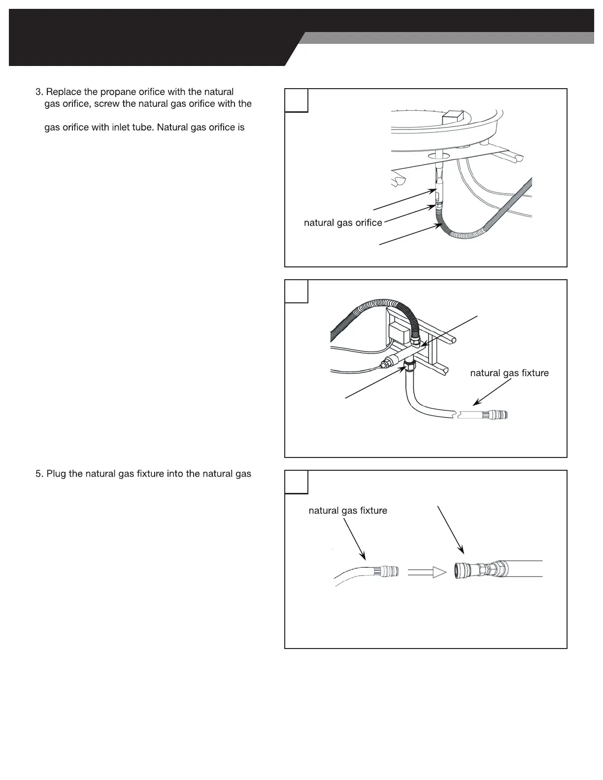 Sunbeam 9103-9294 - Natural Gas Conversion; Step 3 Replace Orifice; Step 4 Connect Natural Gas Hose; Step 5 Plug Natural Gas Fixture
